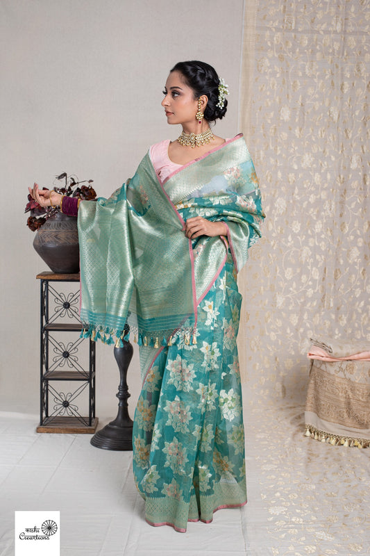 Aqua Blue Pure Tissue Silk Handwoven Banarasi Saree