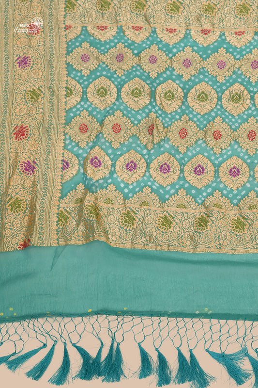 Aqua Blue Pure Khaddi Georgette Banarasi Bandhej Saree with Meenakari