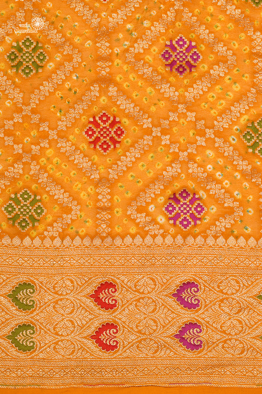 Yellow Pure Khaddi Georgette Banarasi Bandhej Saree with Meenakari