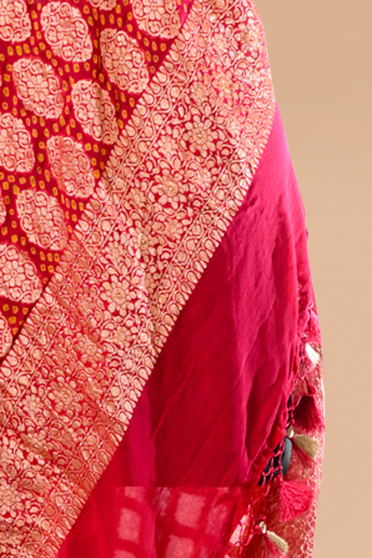 Hot Pink Pure Khaddi Georgette Banarasi Bandhej Saree