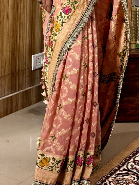 Pink Pure Khaddi Georgette Handloom Banarasi Saree