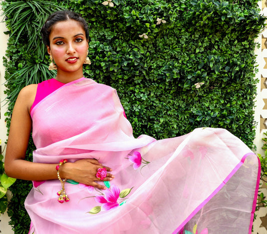 Black and Pink Pure Kora Silk Handloom Banarasi Saree