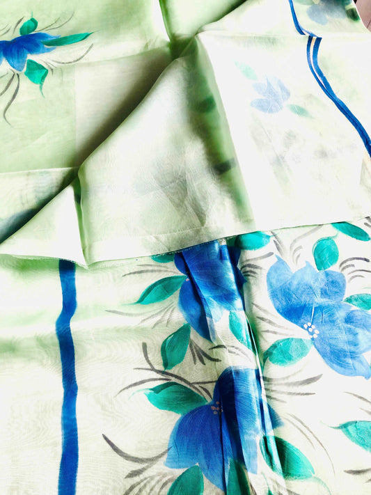 Powder Blue Hand Embrodery Pure Kora Silk Saree