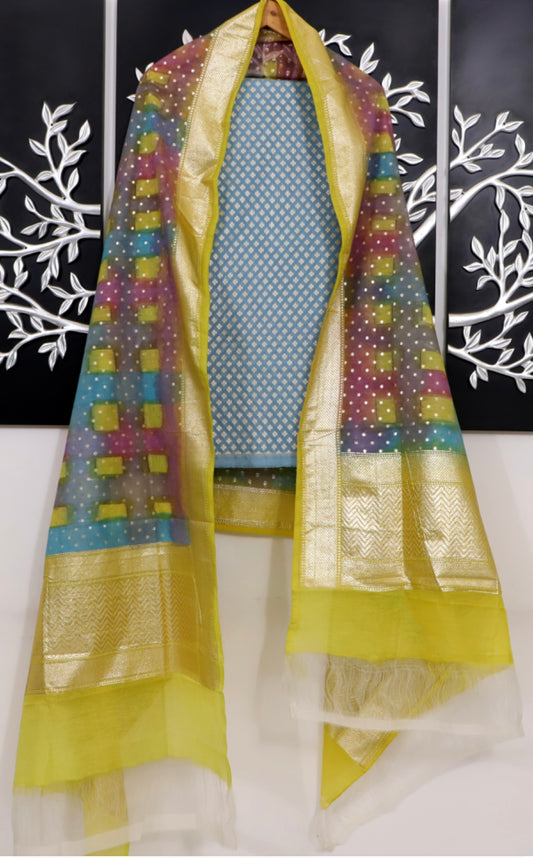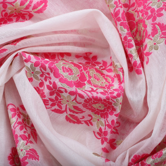 White and Pink Cotton Banarasi Handloom Designer Suit