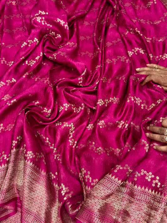 Magenta Pink Pure Mashru Silk Handwoven Banarasi Saree