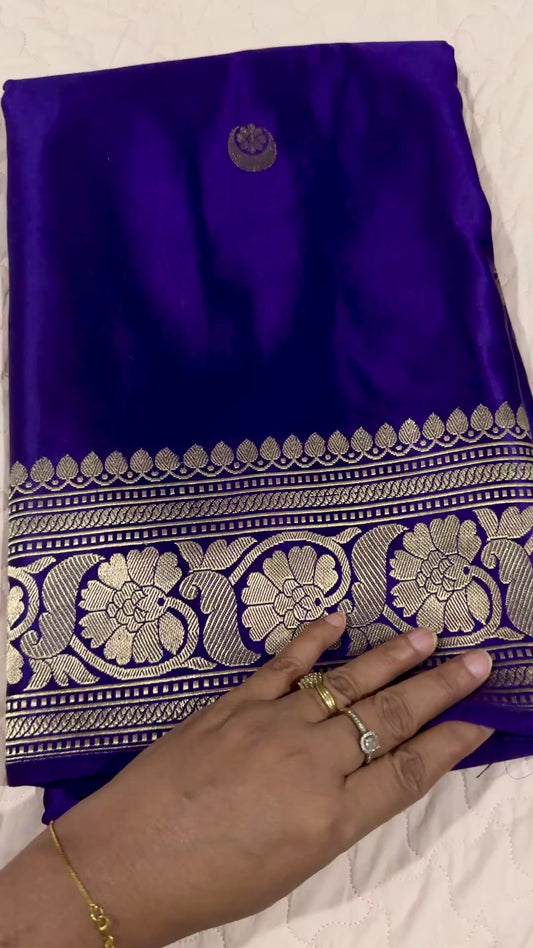 • Royal Blue Pure Mashru  Silk Handwoven Banarasi Saree