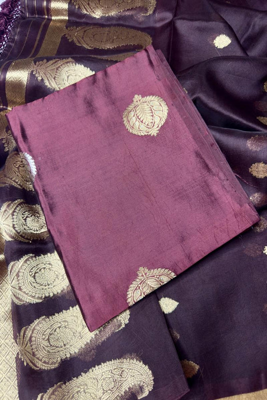 Chestnut Brown Pure Kora Cotton Handloom Banarasi Suit Set