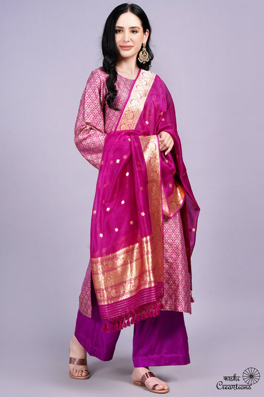 Purple Pure Katan Silk Brocade Suit Set with Kora Silk Dupatta