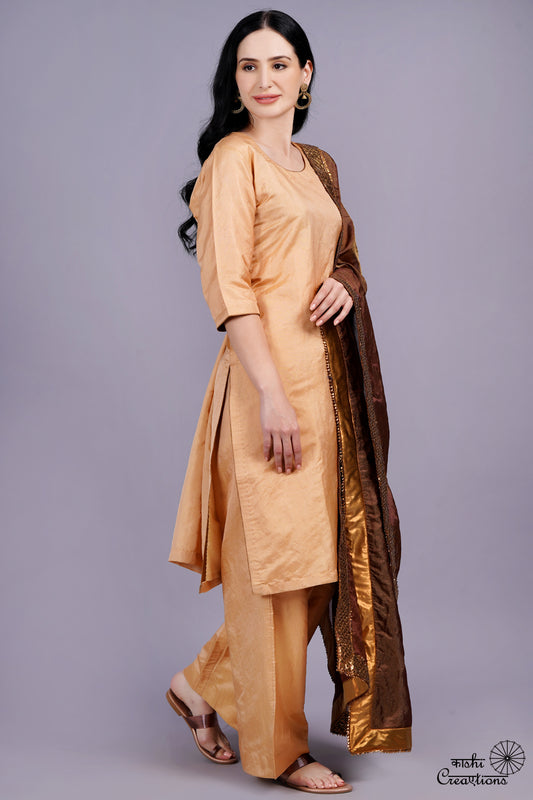 Golden Brown Pure Tissue Silk Handloom Sharara Set