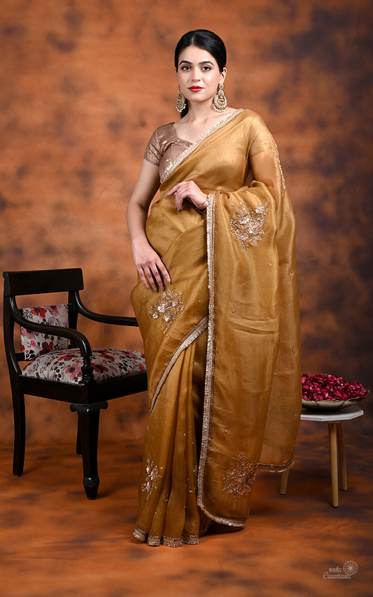 Walnut Brown Kora Silk Hand work Banarasi Saree