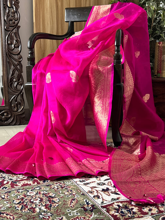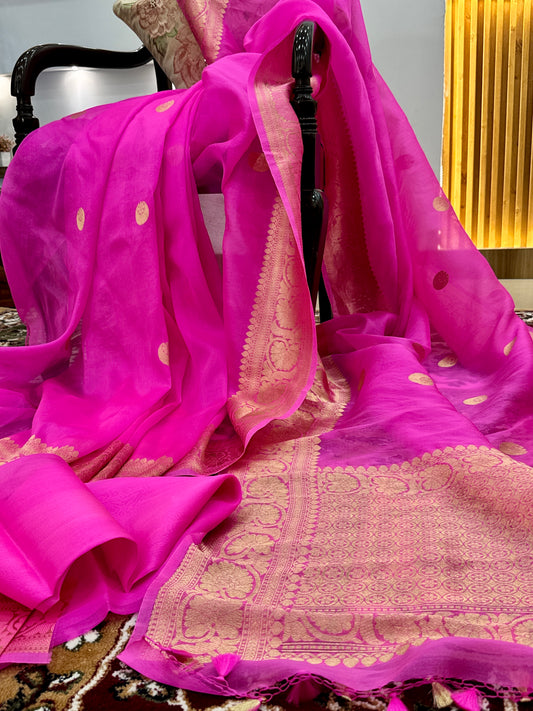 Rani Pink Kora Silk Handloom Banarasi Saree