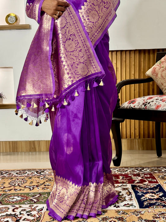 Purpe Pure Kora Silk Handloom Banarasi Saree