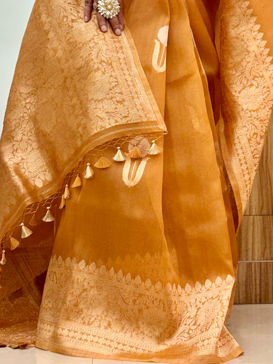 Brown Pure Kora Silk Handloom Banarasi Saree