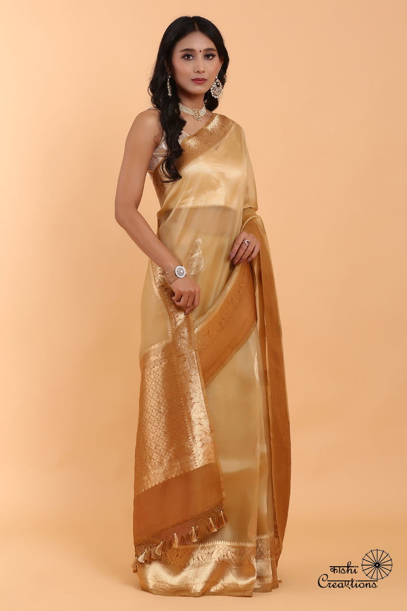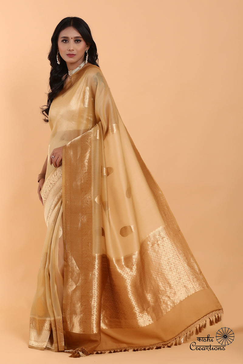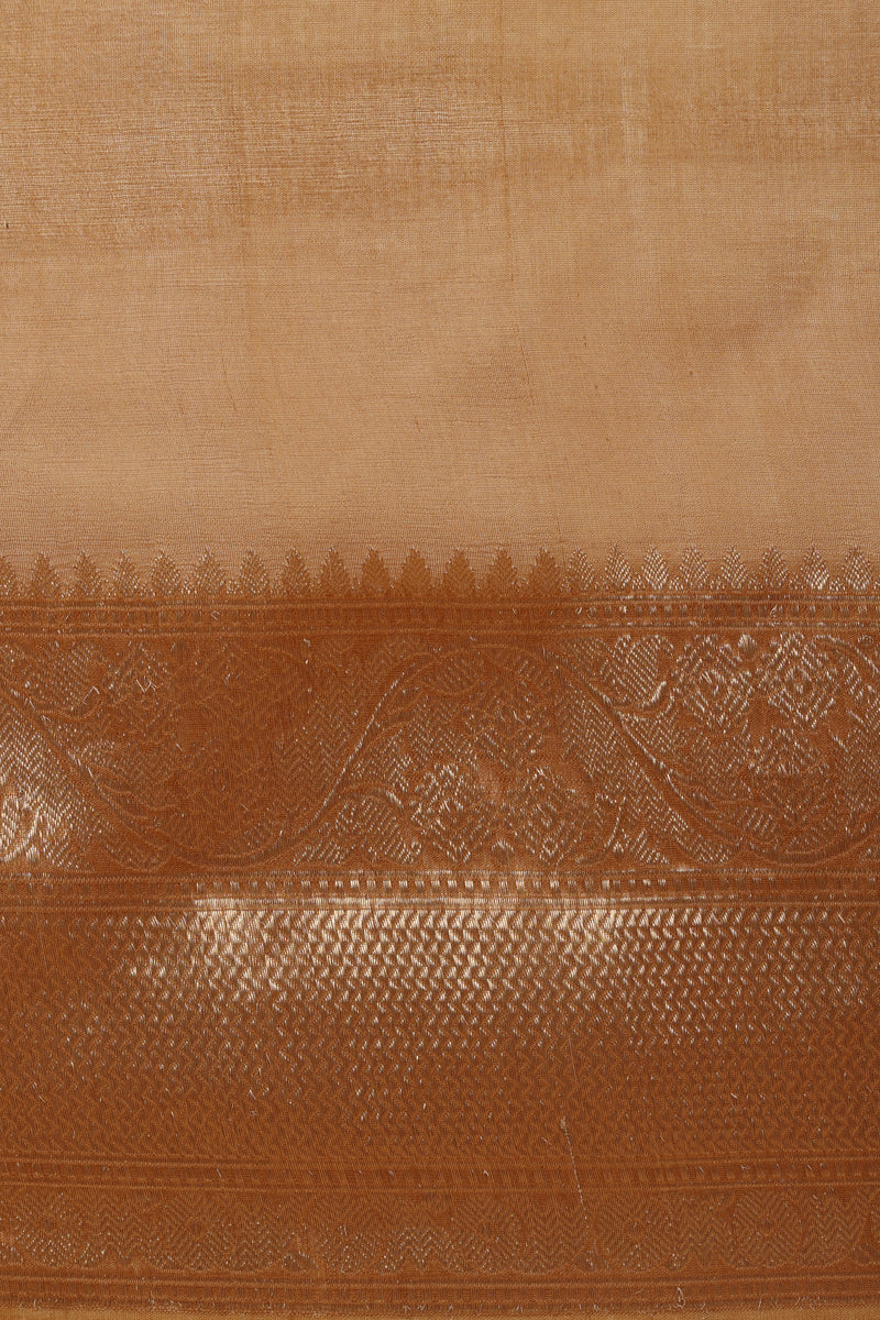 Beige Brown Pure Kora Silk Handwoven Banaras Saree