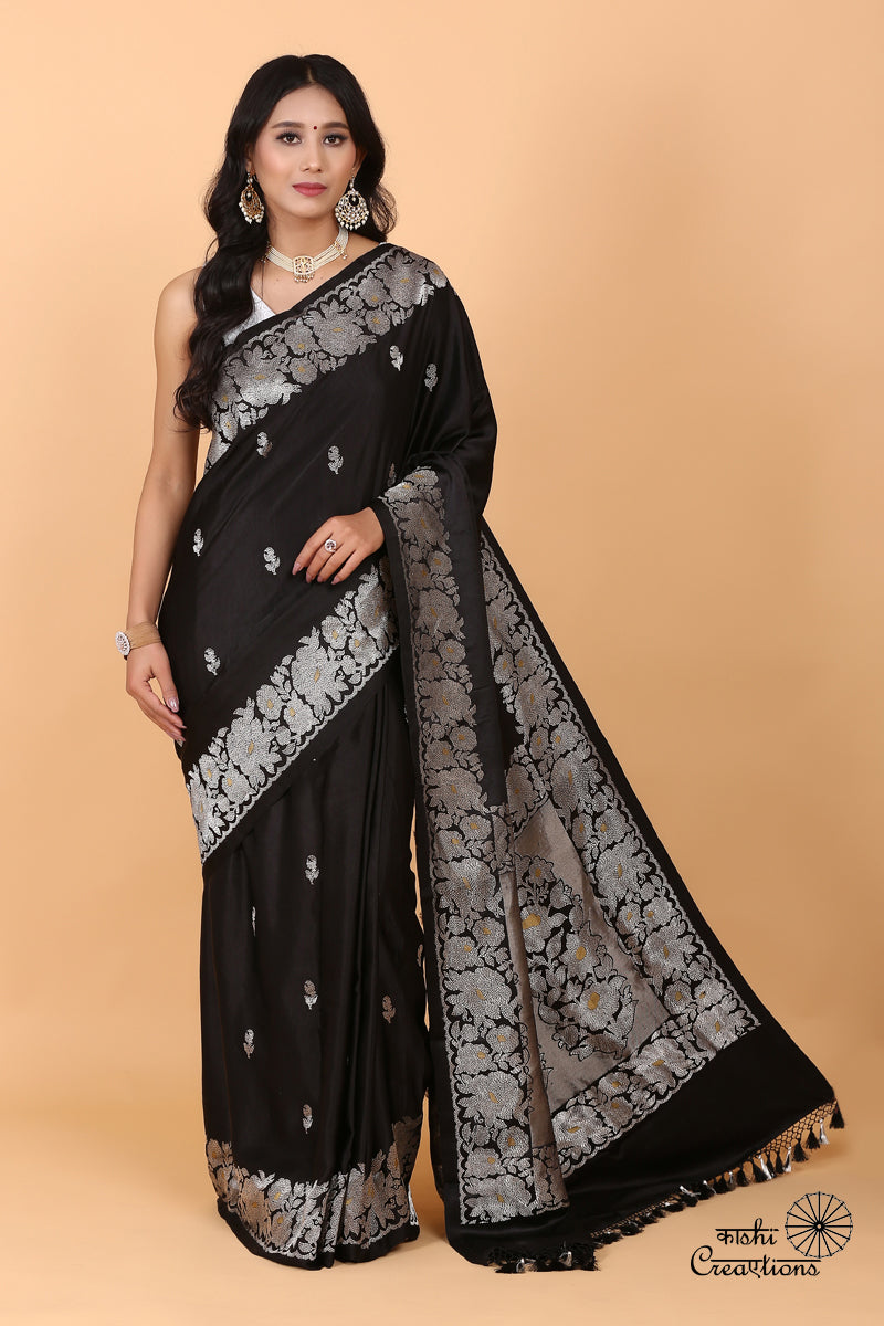 Black Pure Mashru Silk Handwoven Banarasi Saree