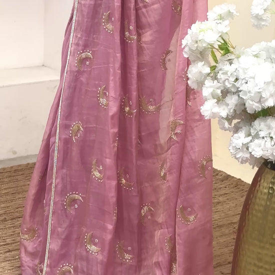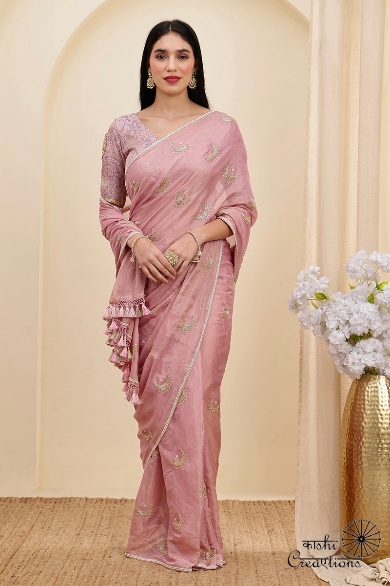 Blush Pink Pure Tissue Silk Hand work Banarasi Saree