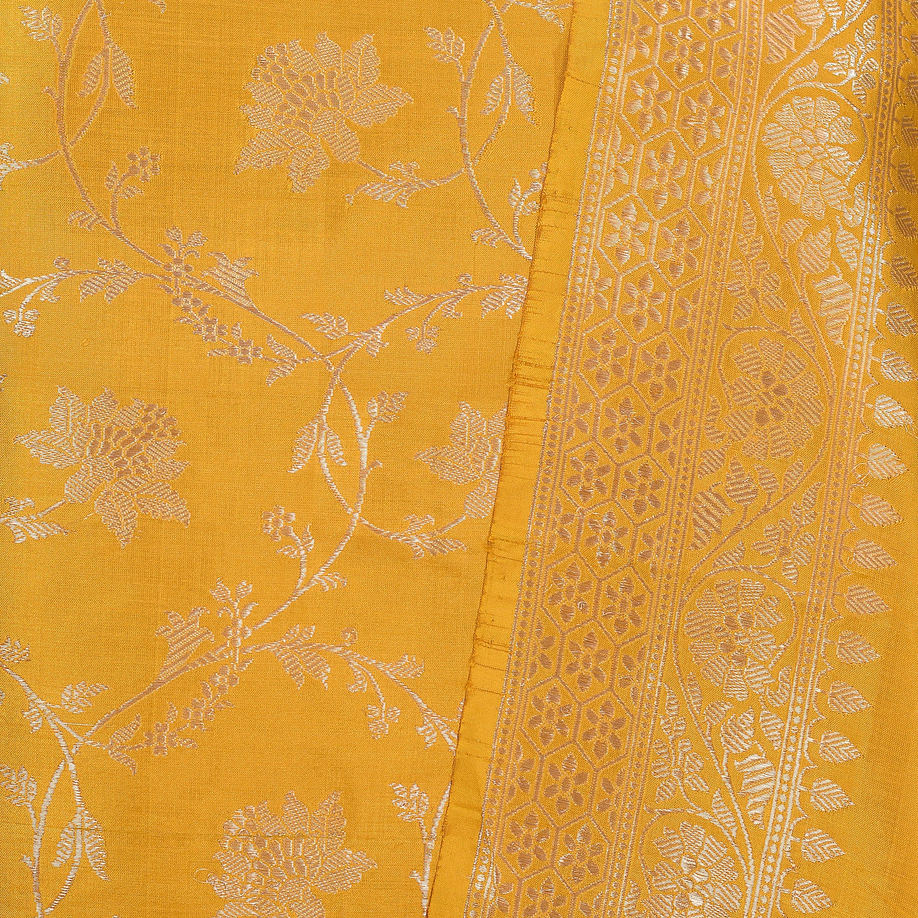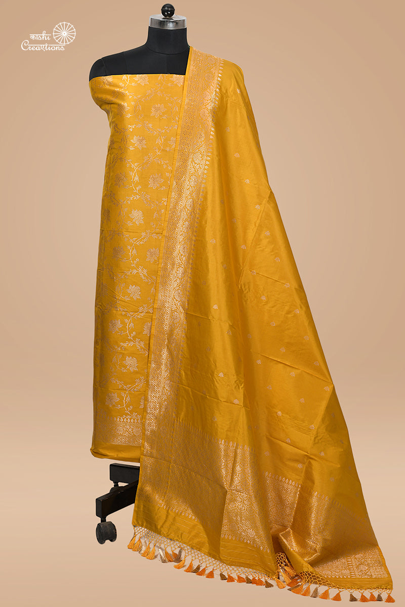 Bright Yellow Pure Katan Silk Jungla Suit Handloom Banarasi Suit Set