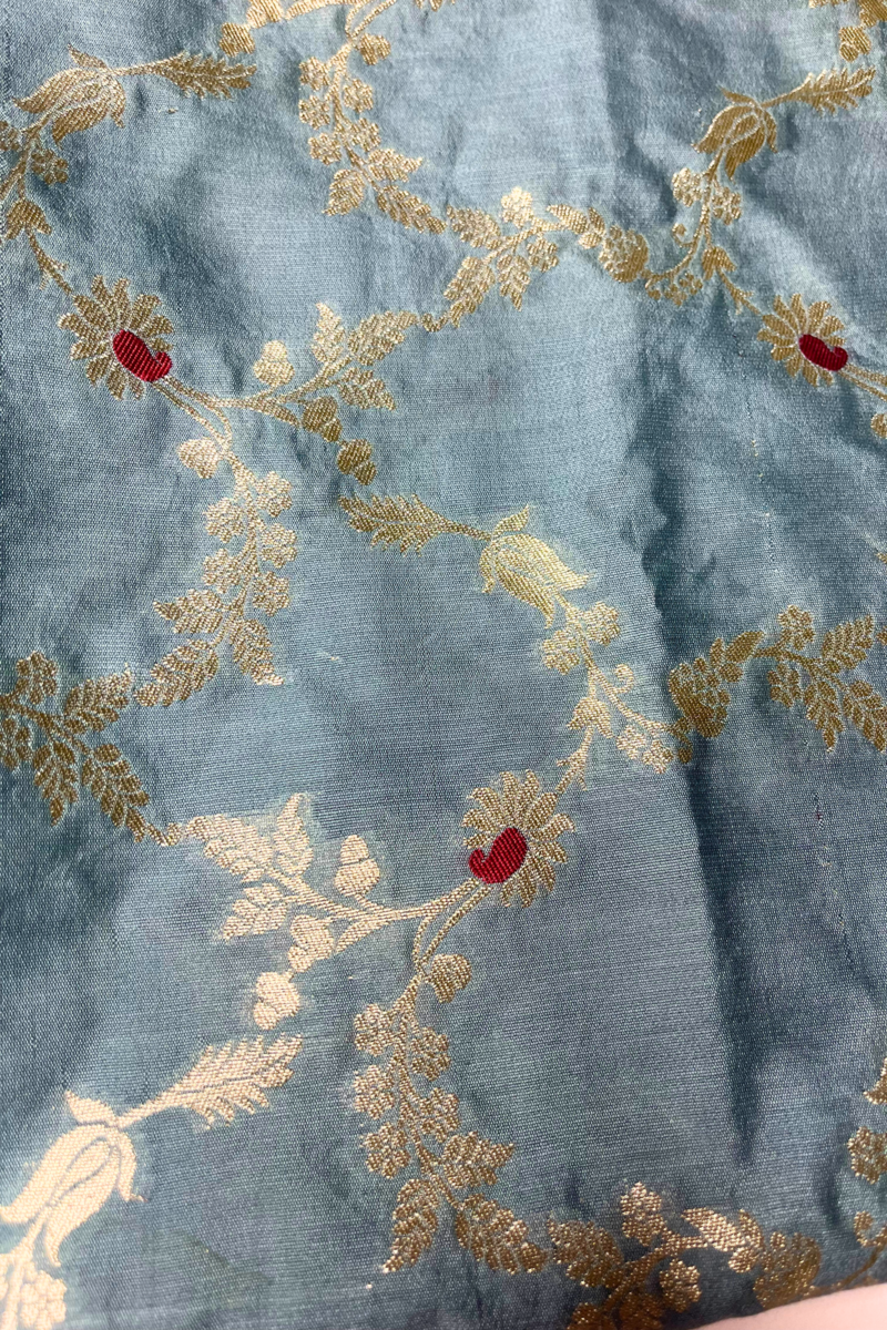Blouse: Powder Aqua Blue Pure Chinya Silk Brocade Blouse