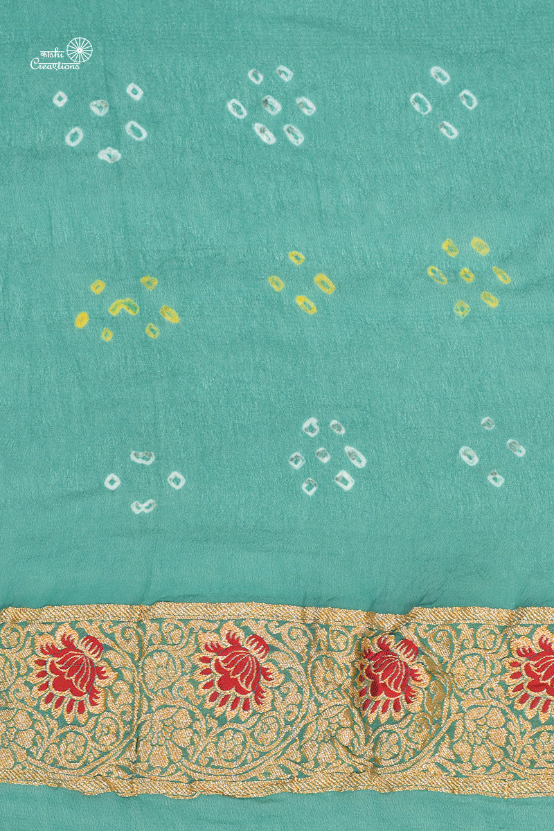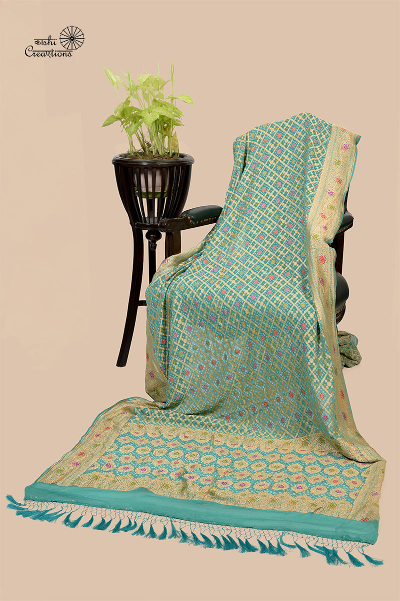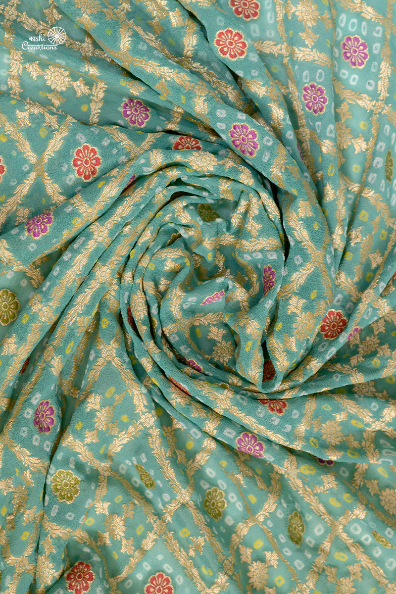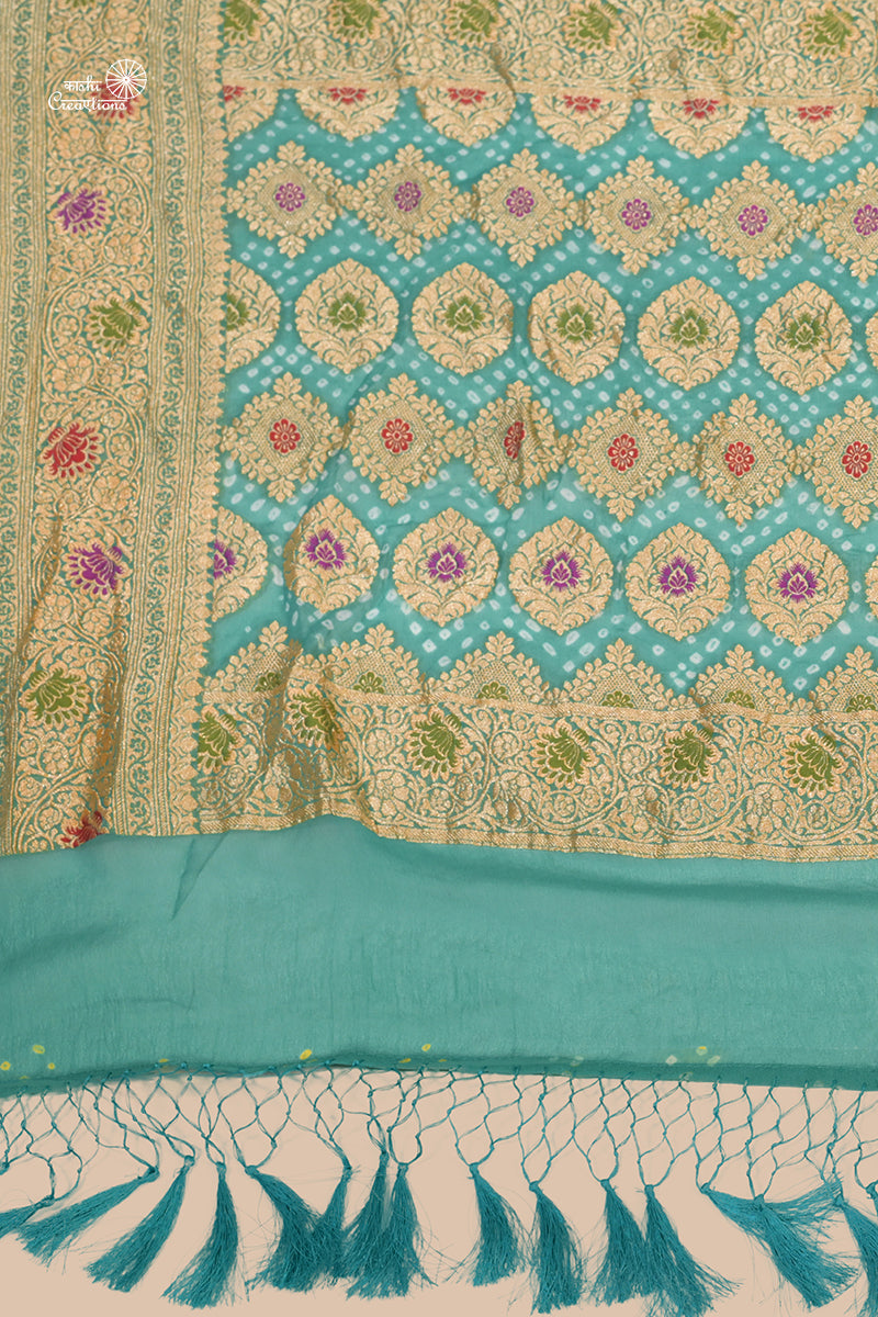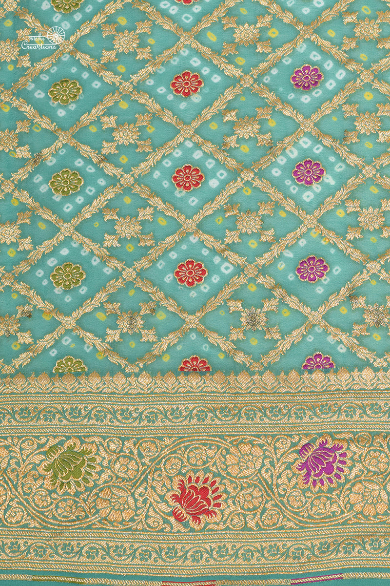 Aqua Blue Pure Khaddi Georgette Banarasi Bandhej Saree with Meenakari