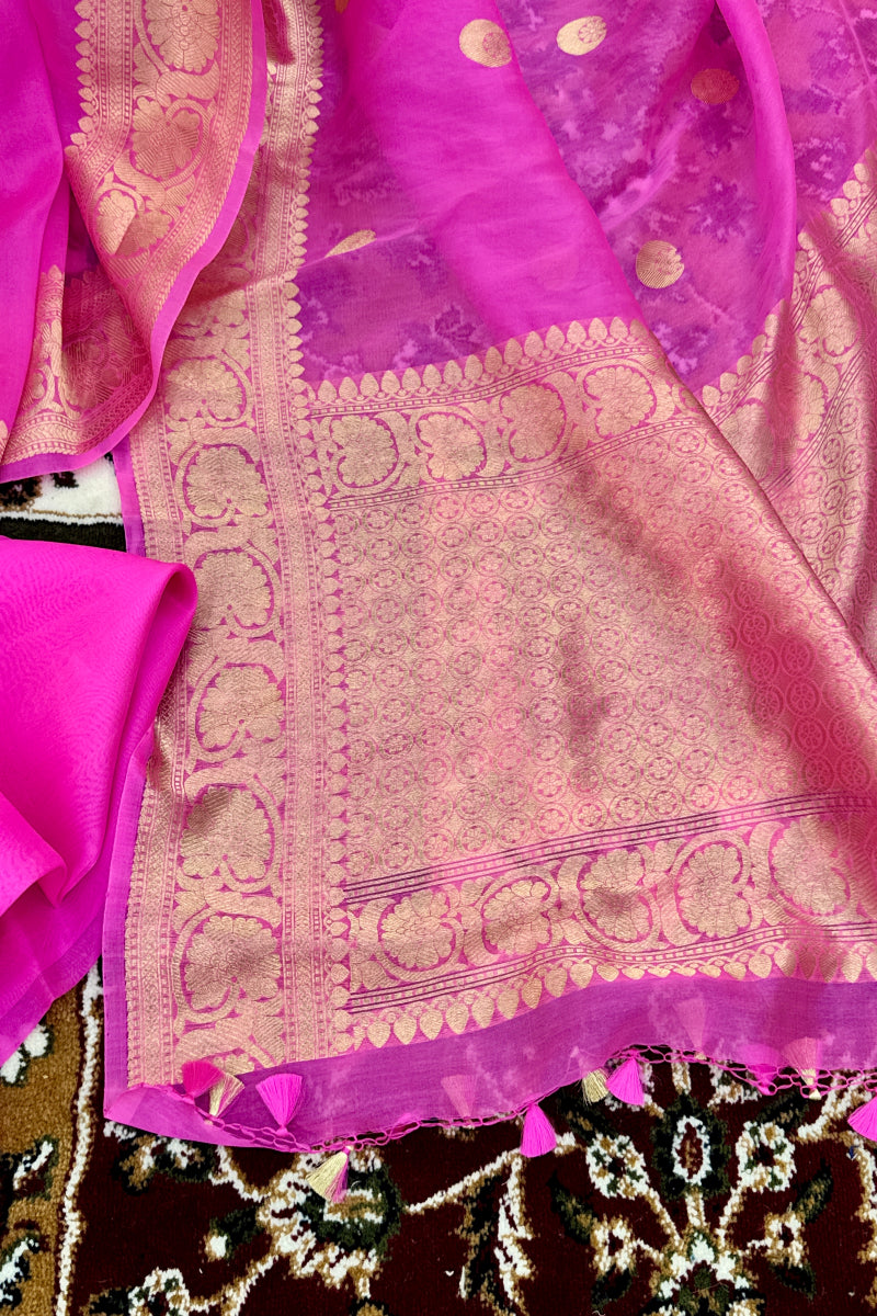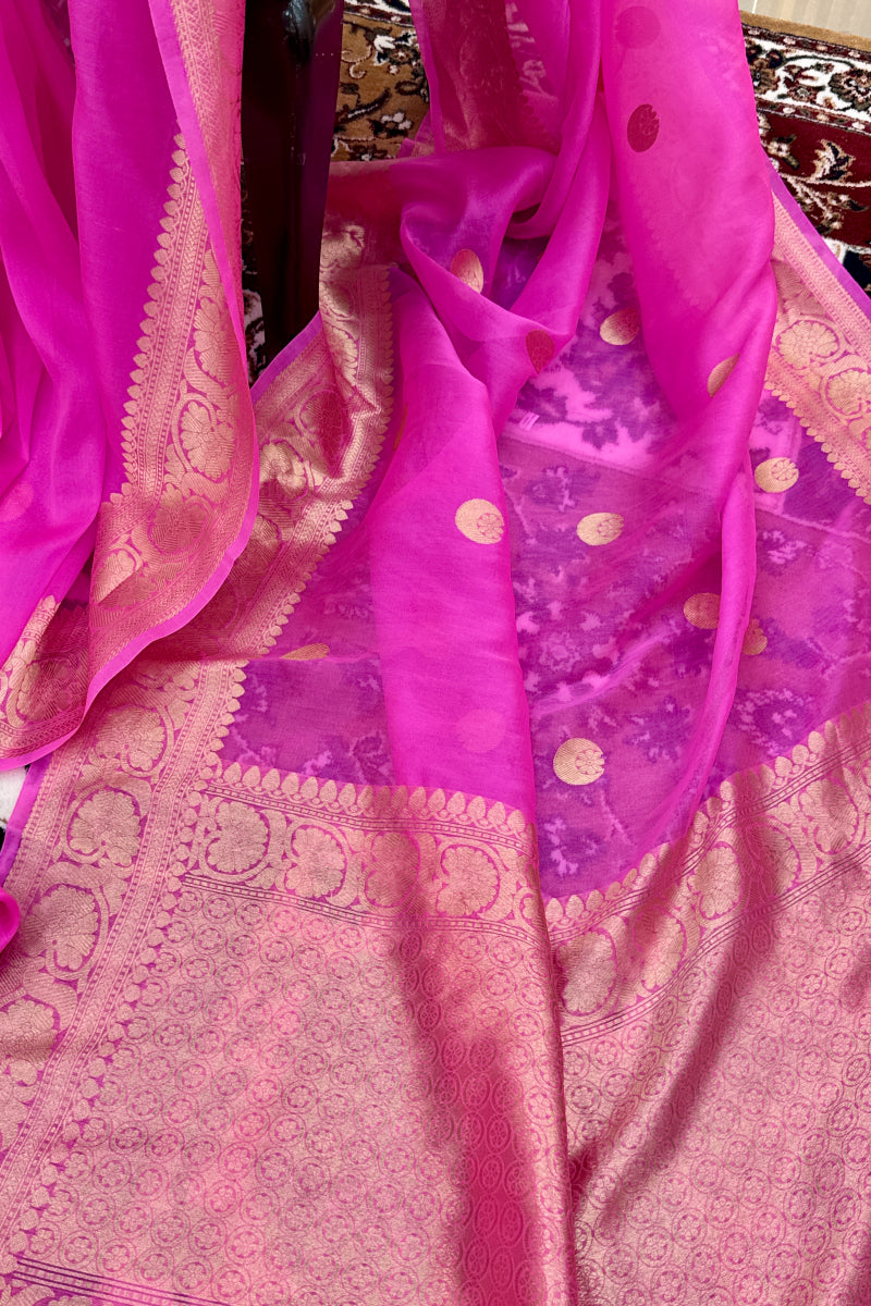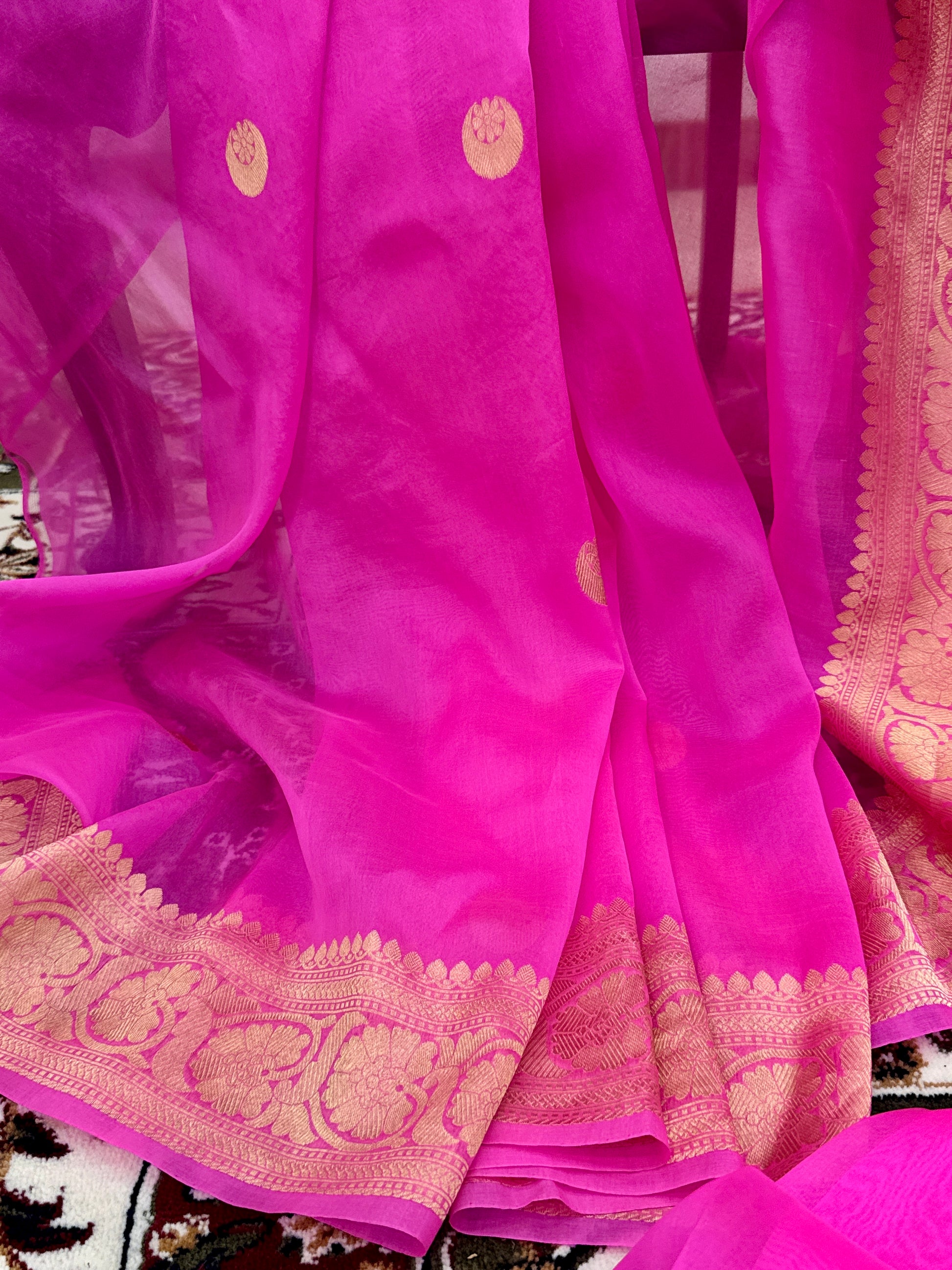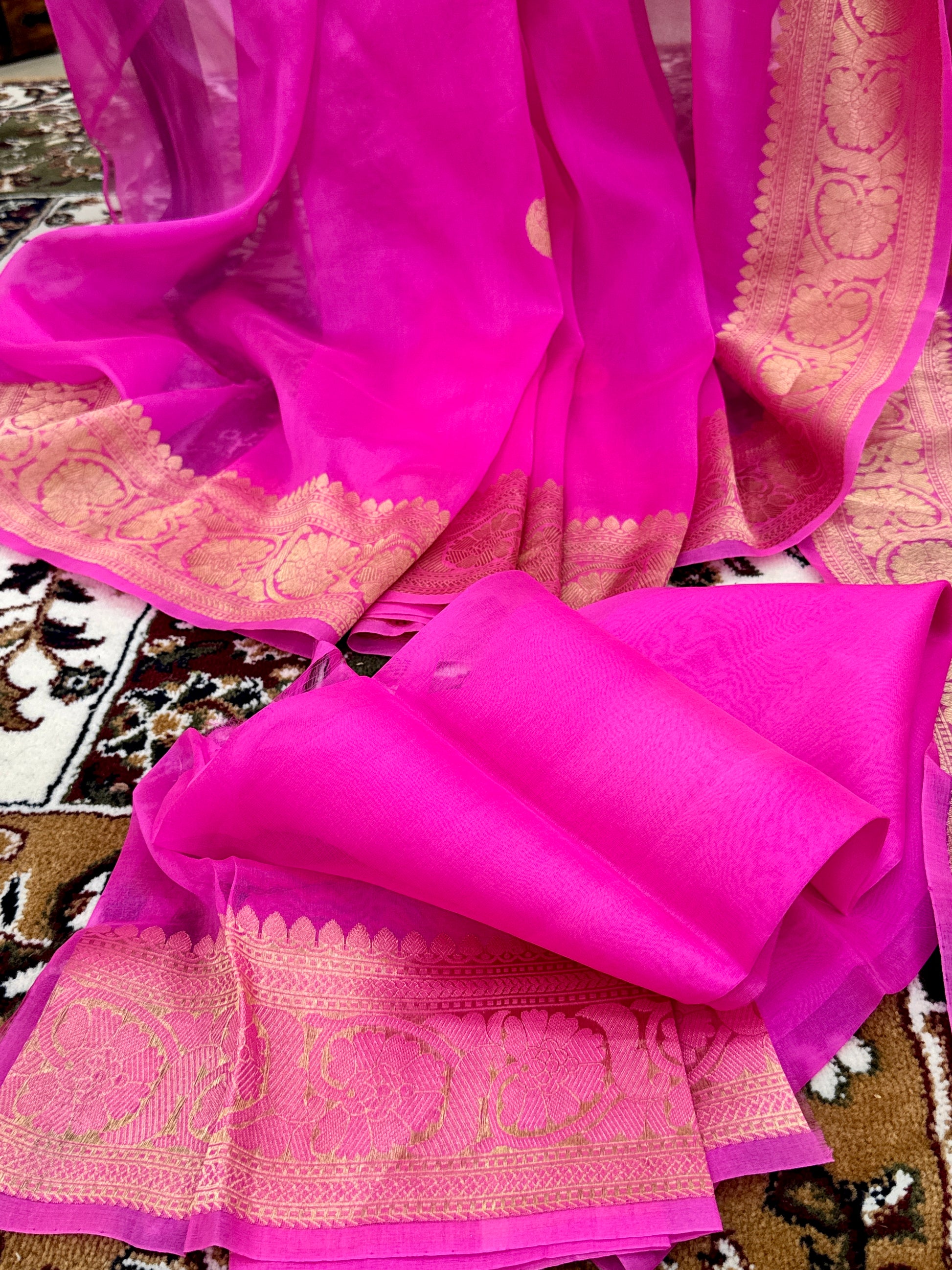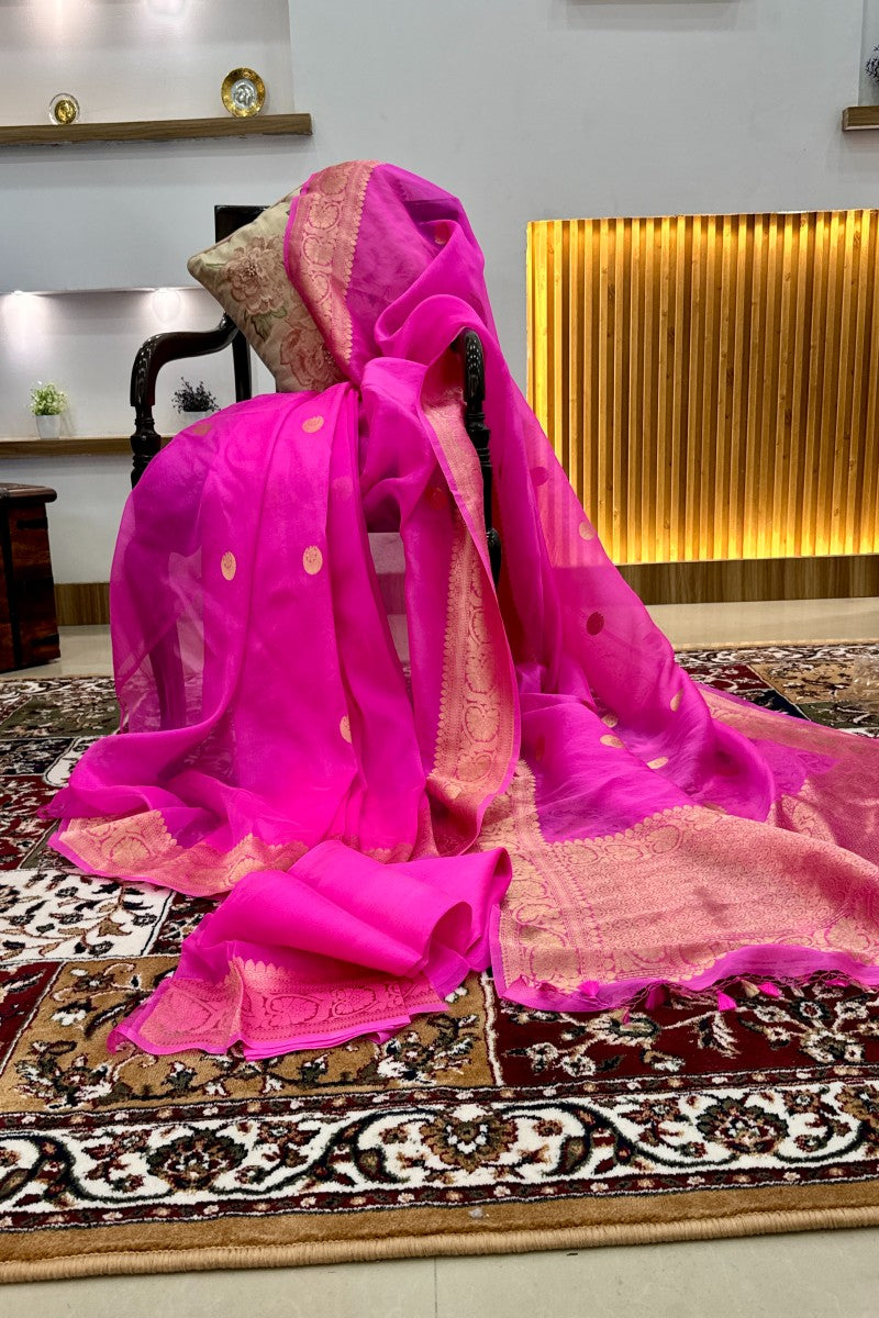 Candy Pink Pure Kora Silk Handloom Banarasi Saree