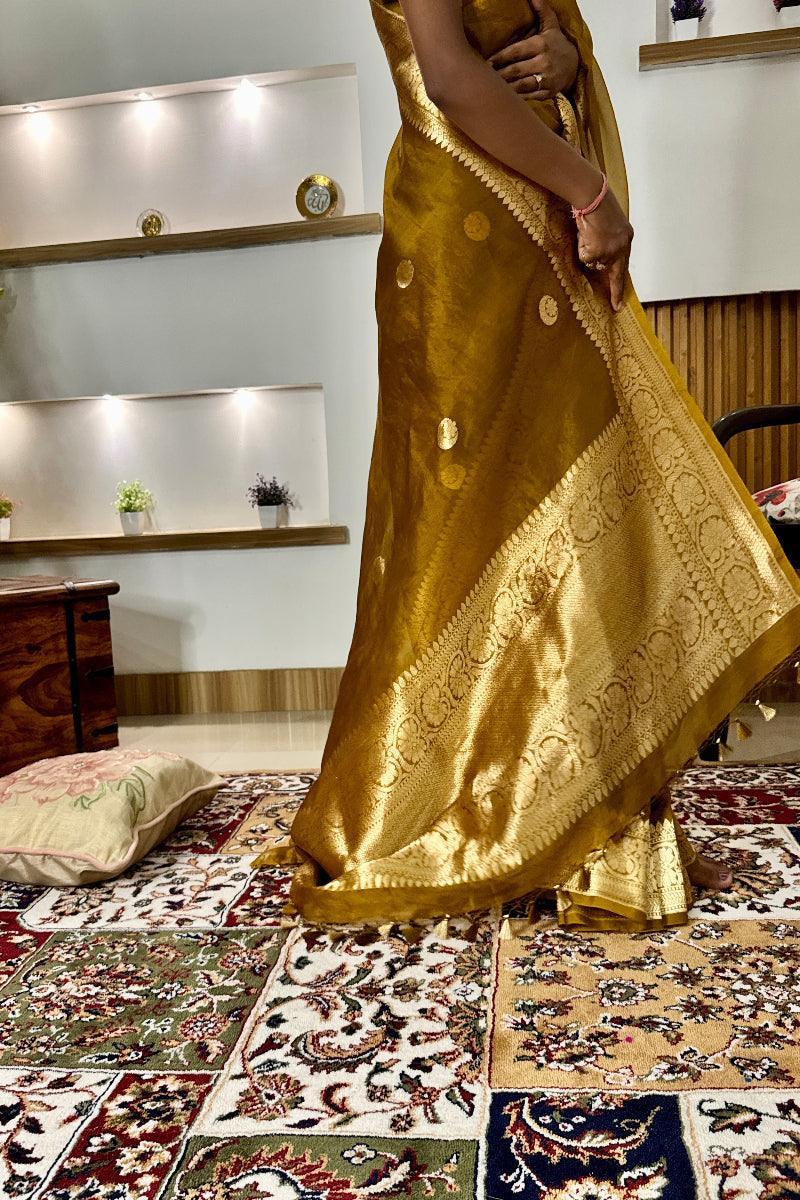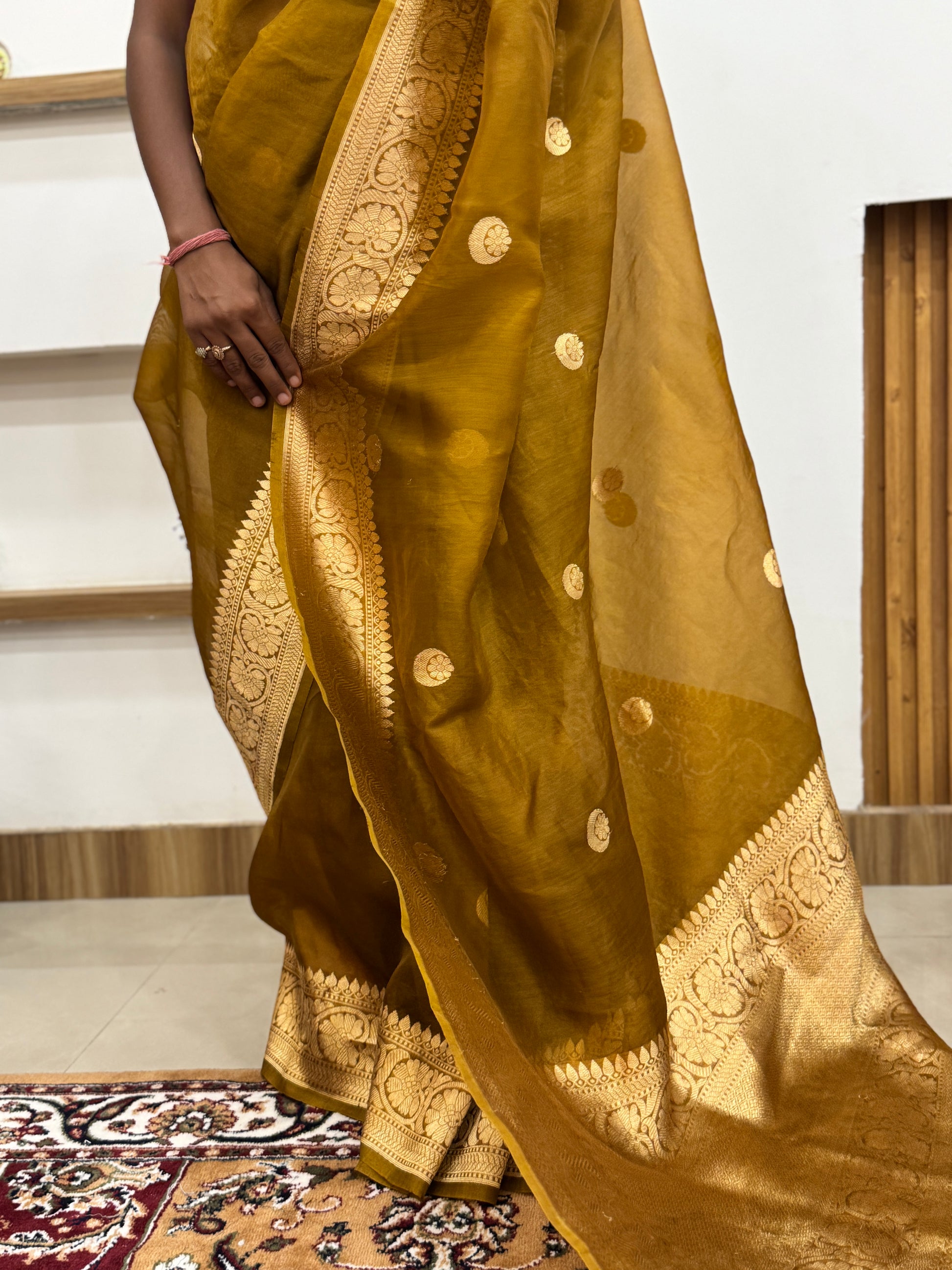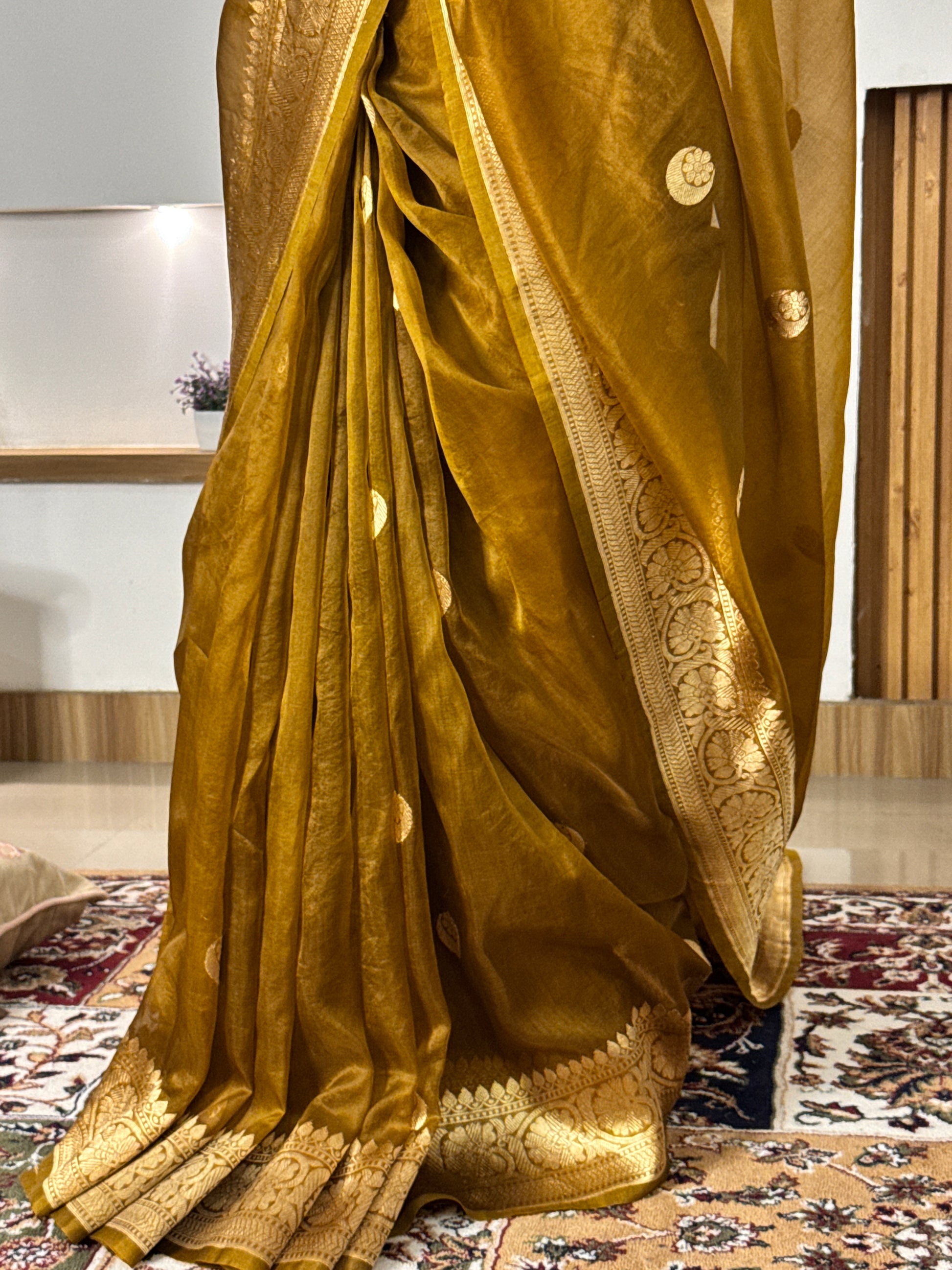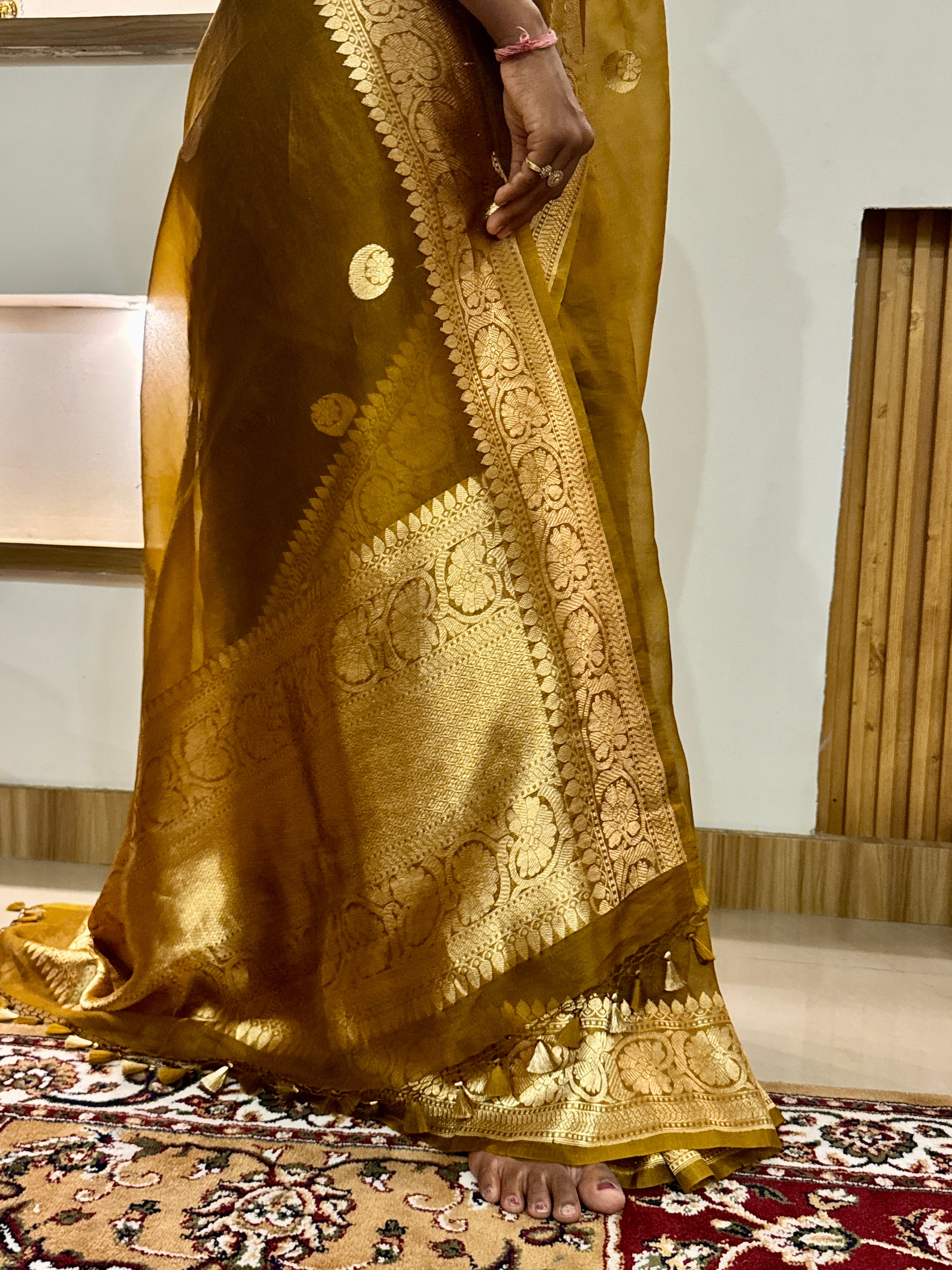 Brown Pure Kora Silk Handloom Banarasi Saree