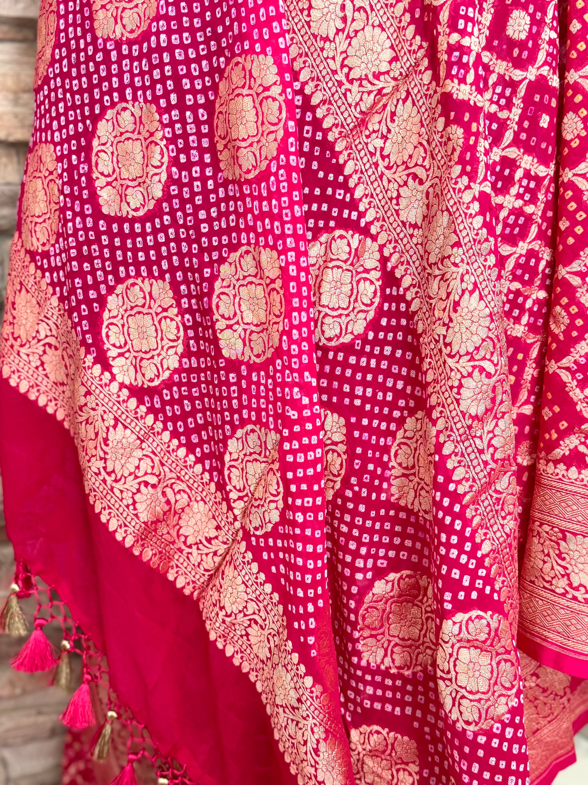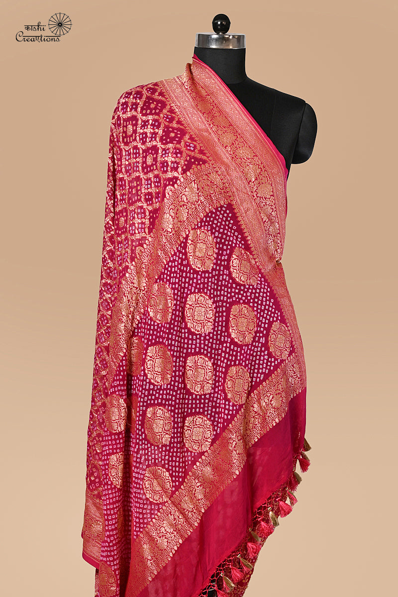 Hot Pink Pure Khaddi Georgette Banarasi Bandhej Saree