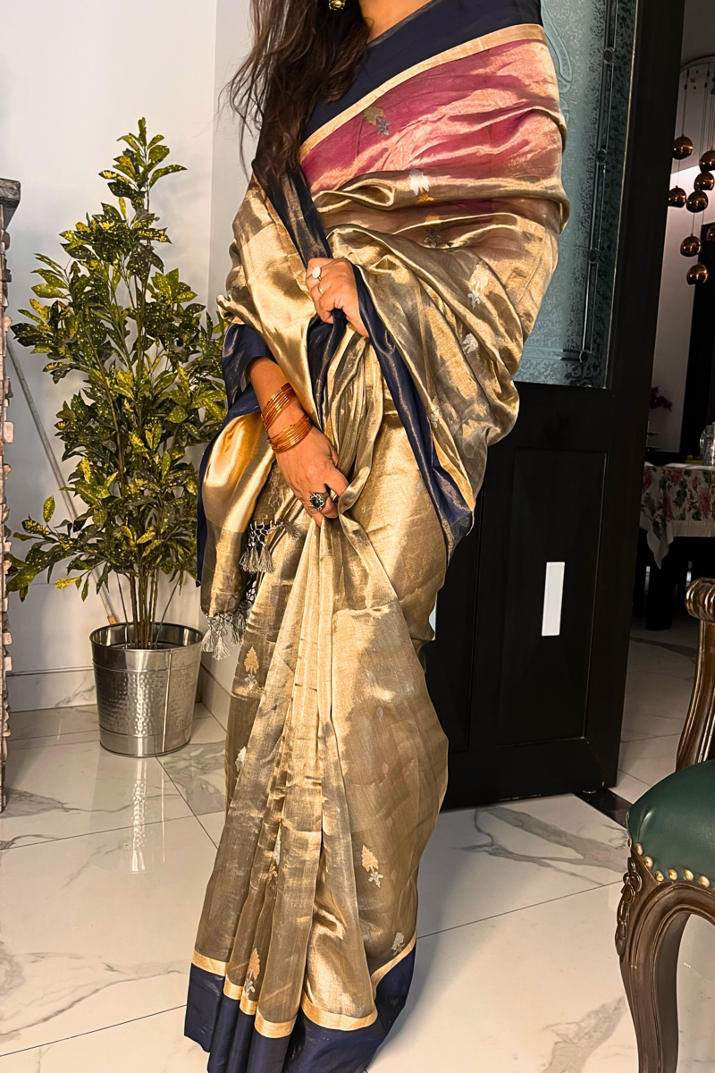 Golden Pure Tissue Silk Handwoven Banarasi Saree