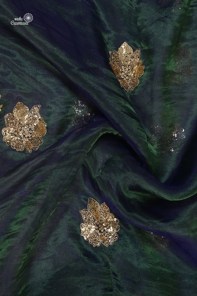 Green Blue Pure Tissue Silk Hand work Banarasi Saree