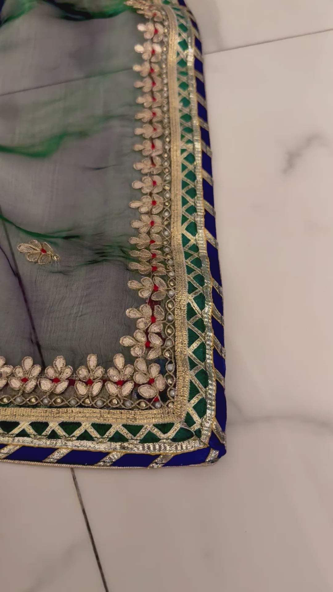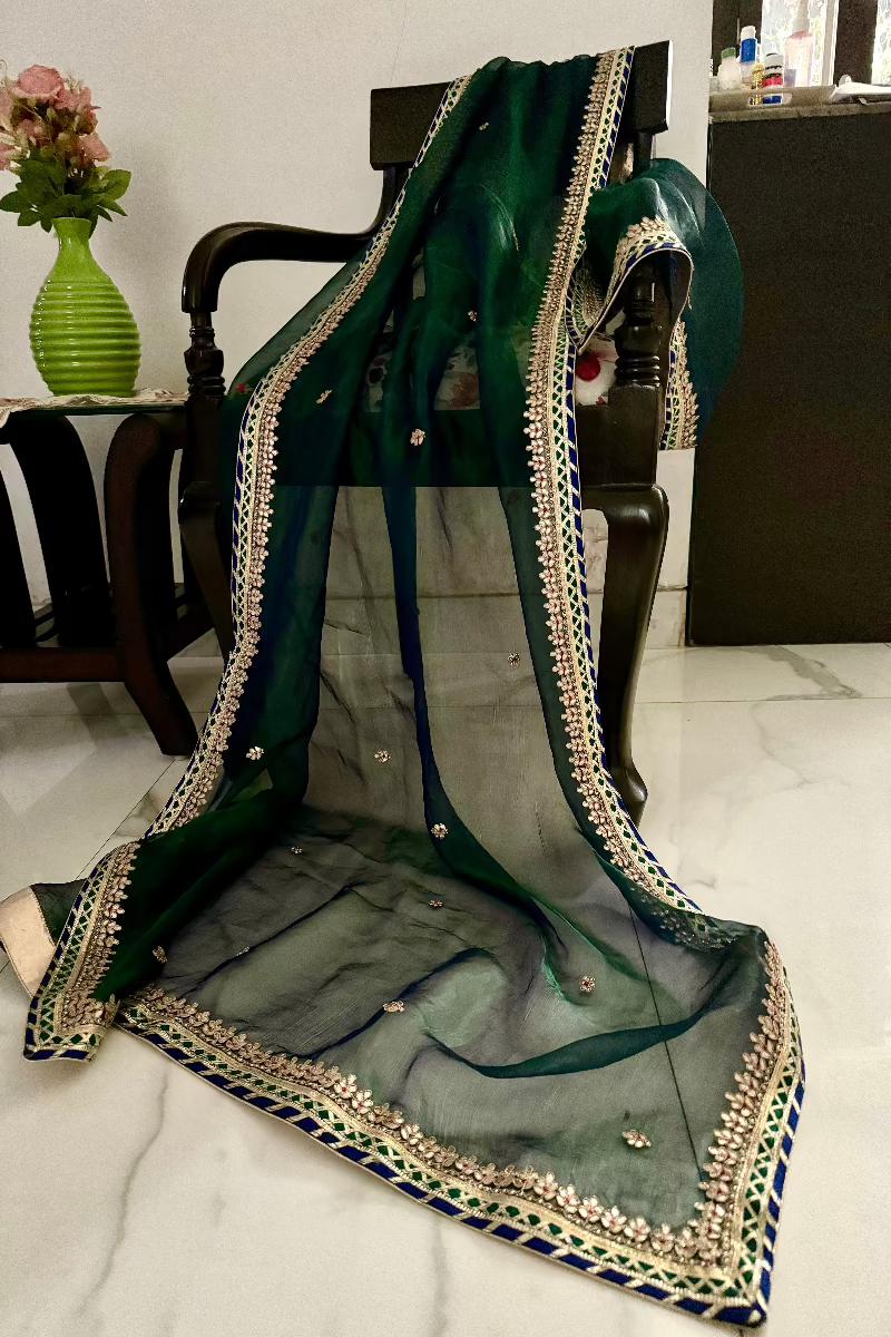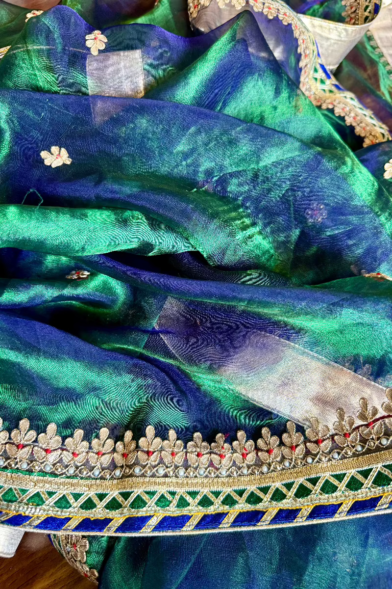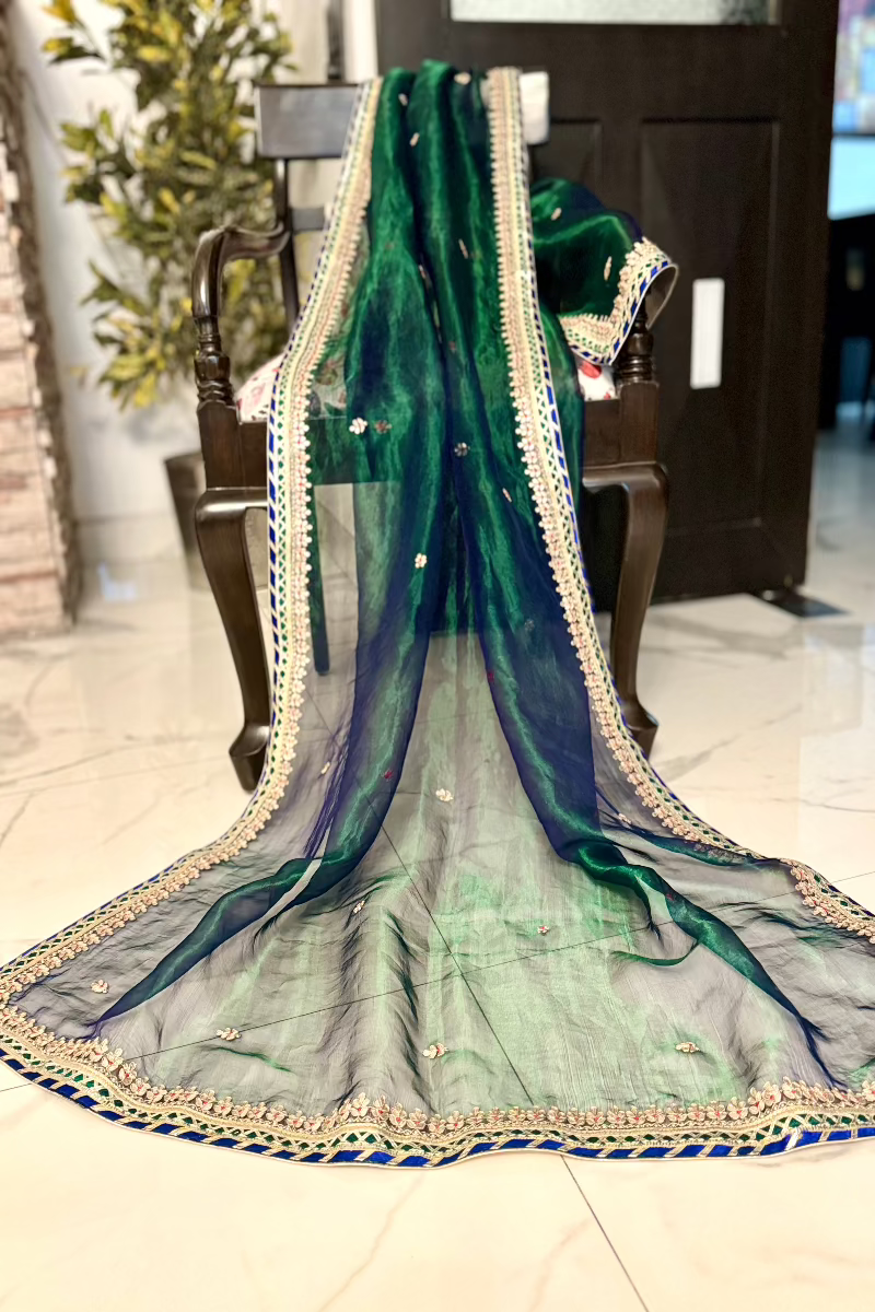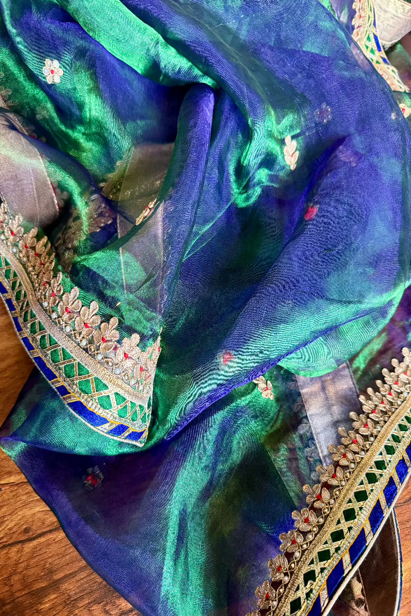 Green Blue Pure Tissue Silk Hand work Dupatta