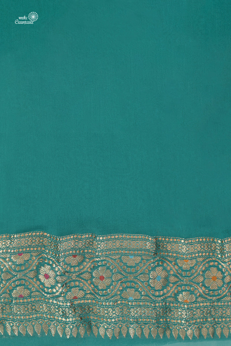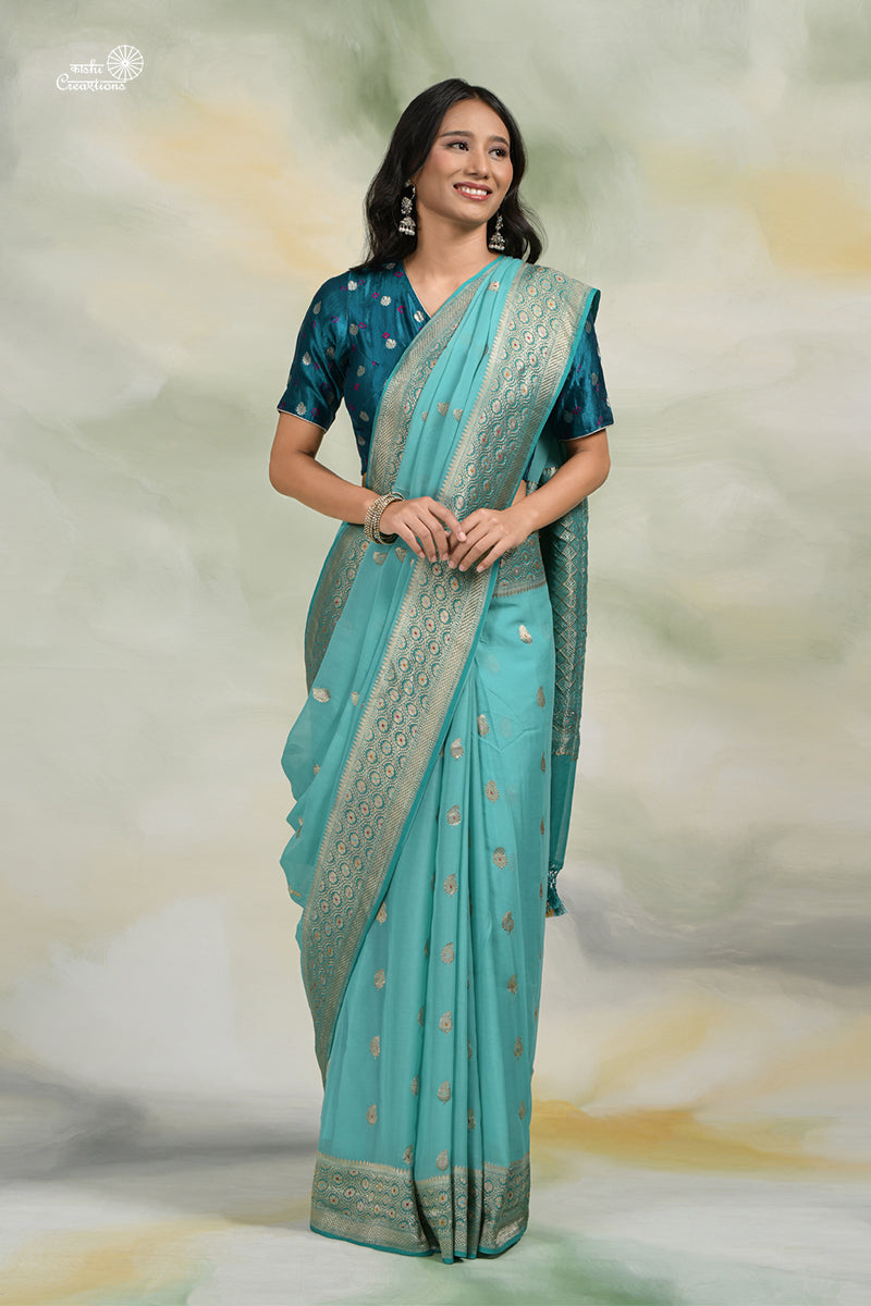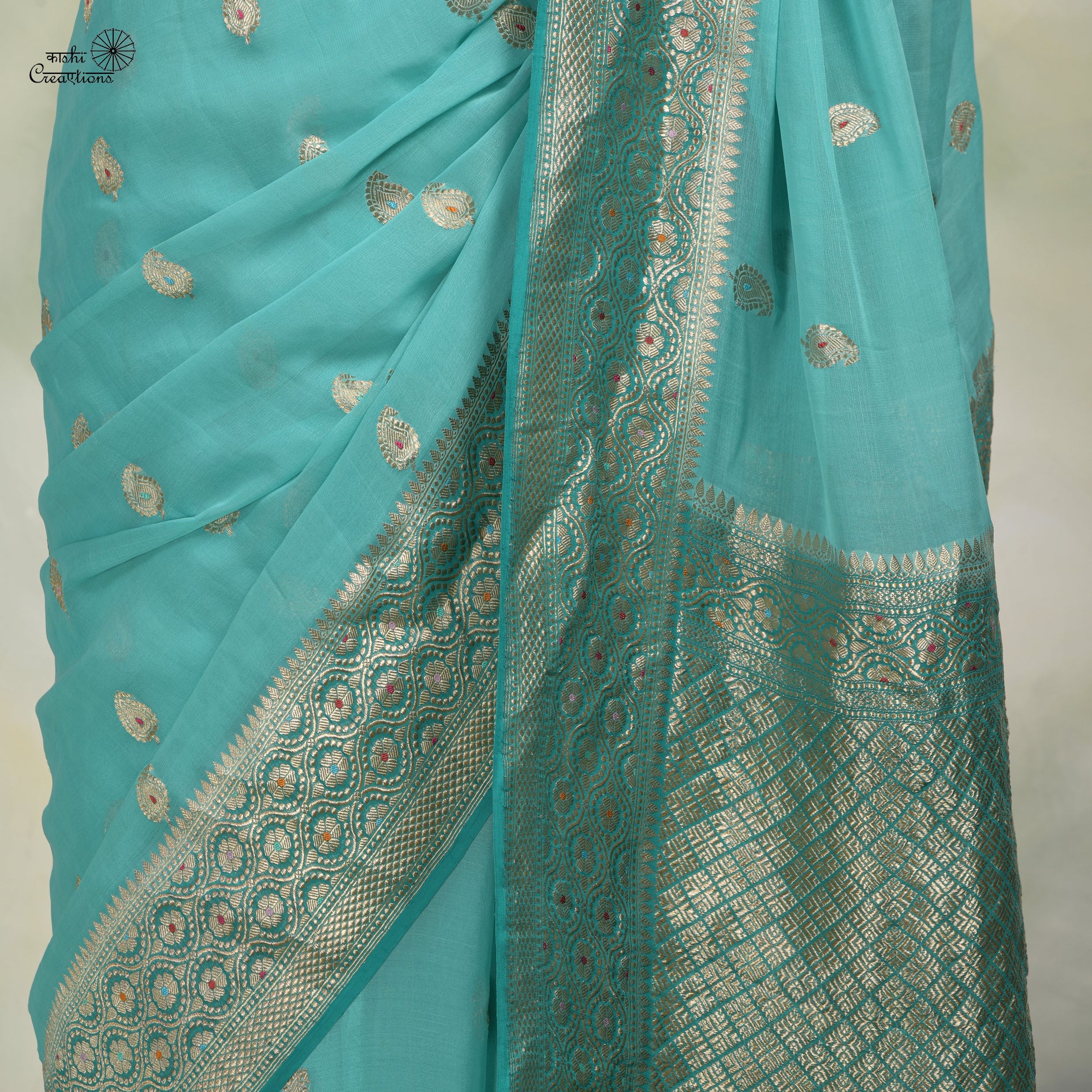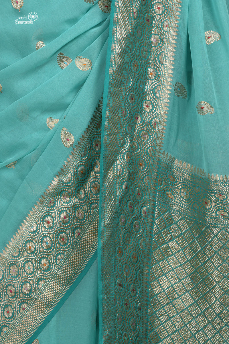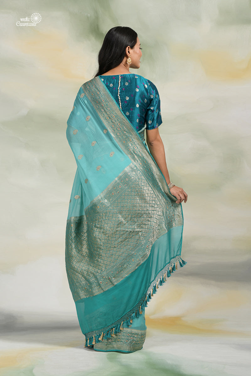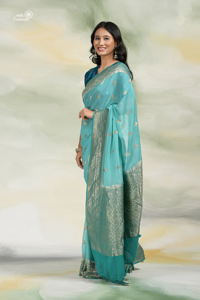 Aqua Blue shaded Chiffon Georgette Silk Handloom Banarasi Saree with Meenakari