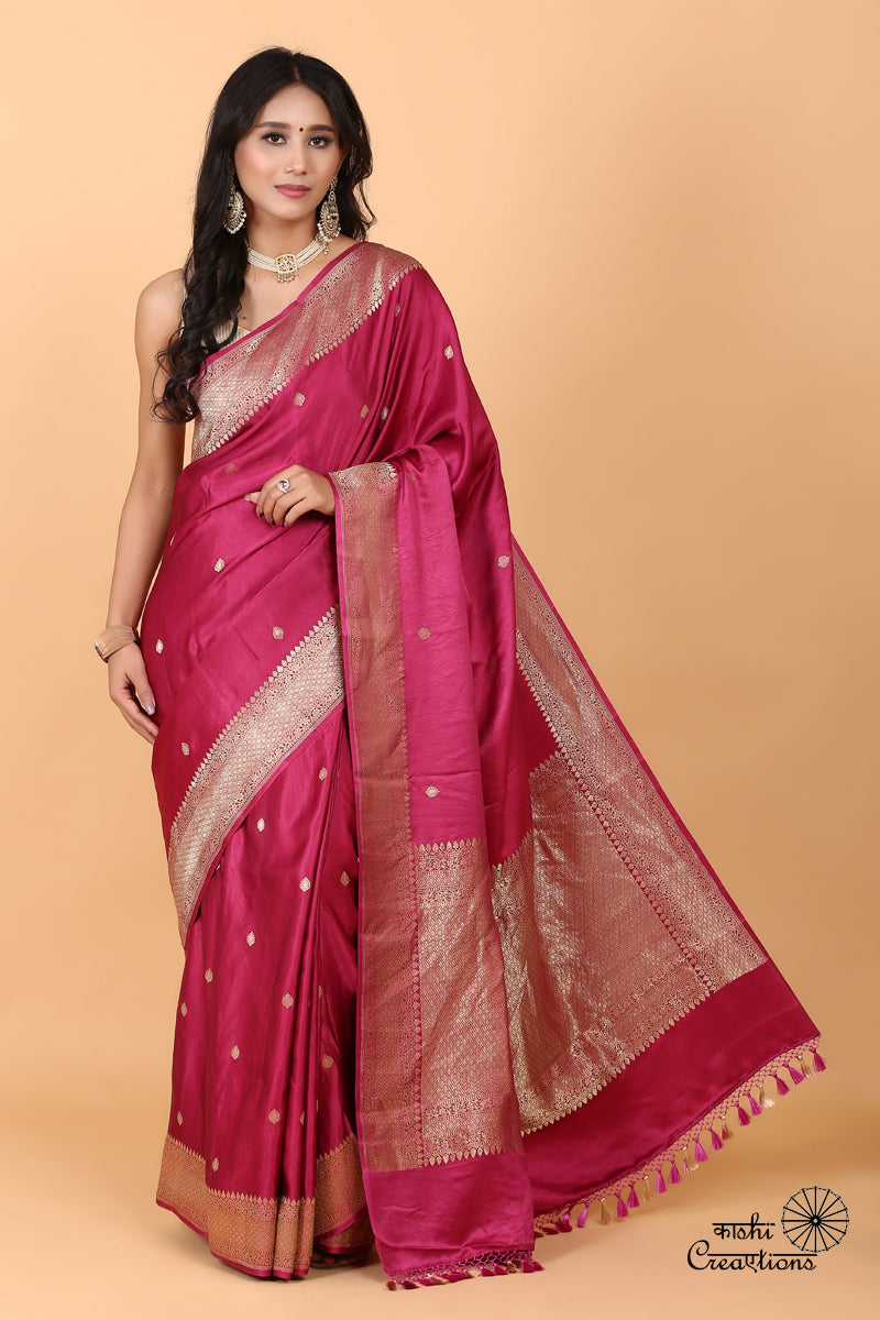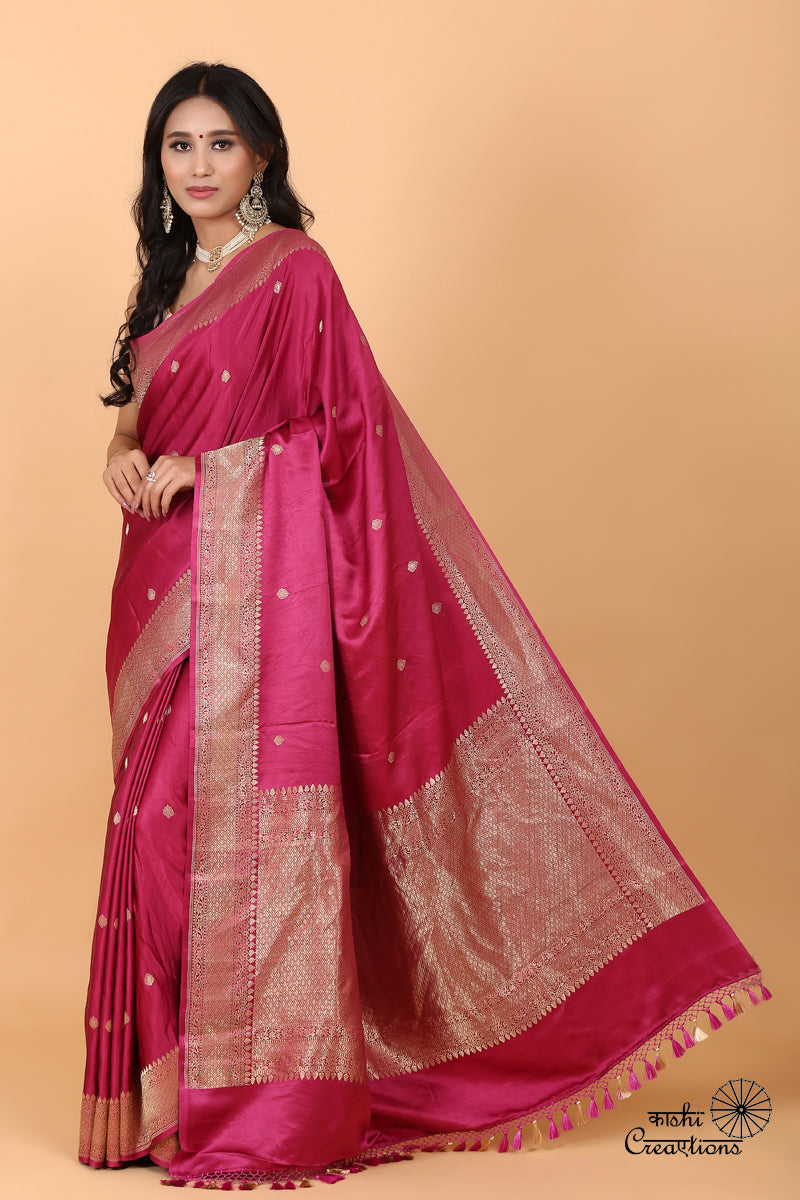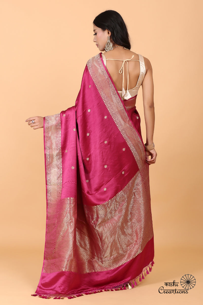 Magenta Pink Pure Mashru Silk Handwoven Banarasi Saree