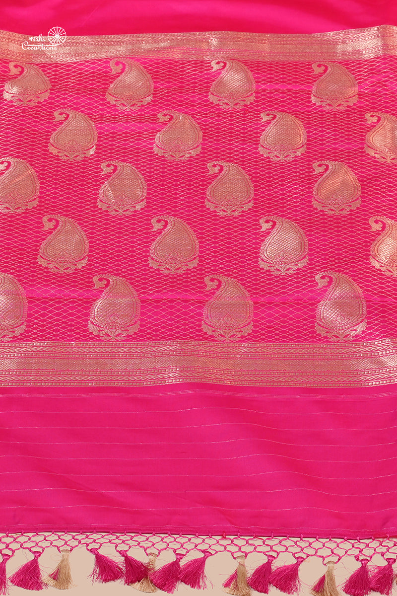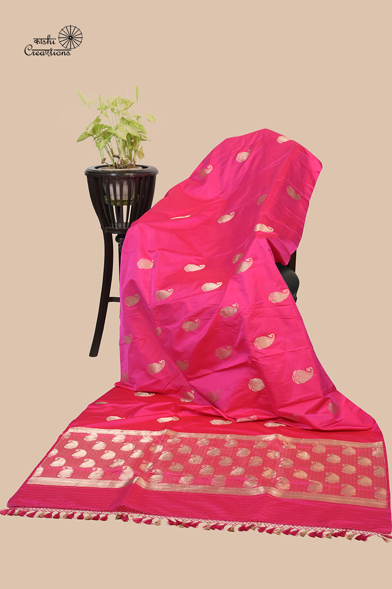 Magenta Pink Pure Mashru Silk Handwoven Banarasi Saree