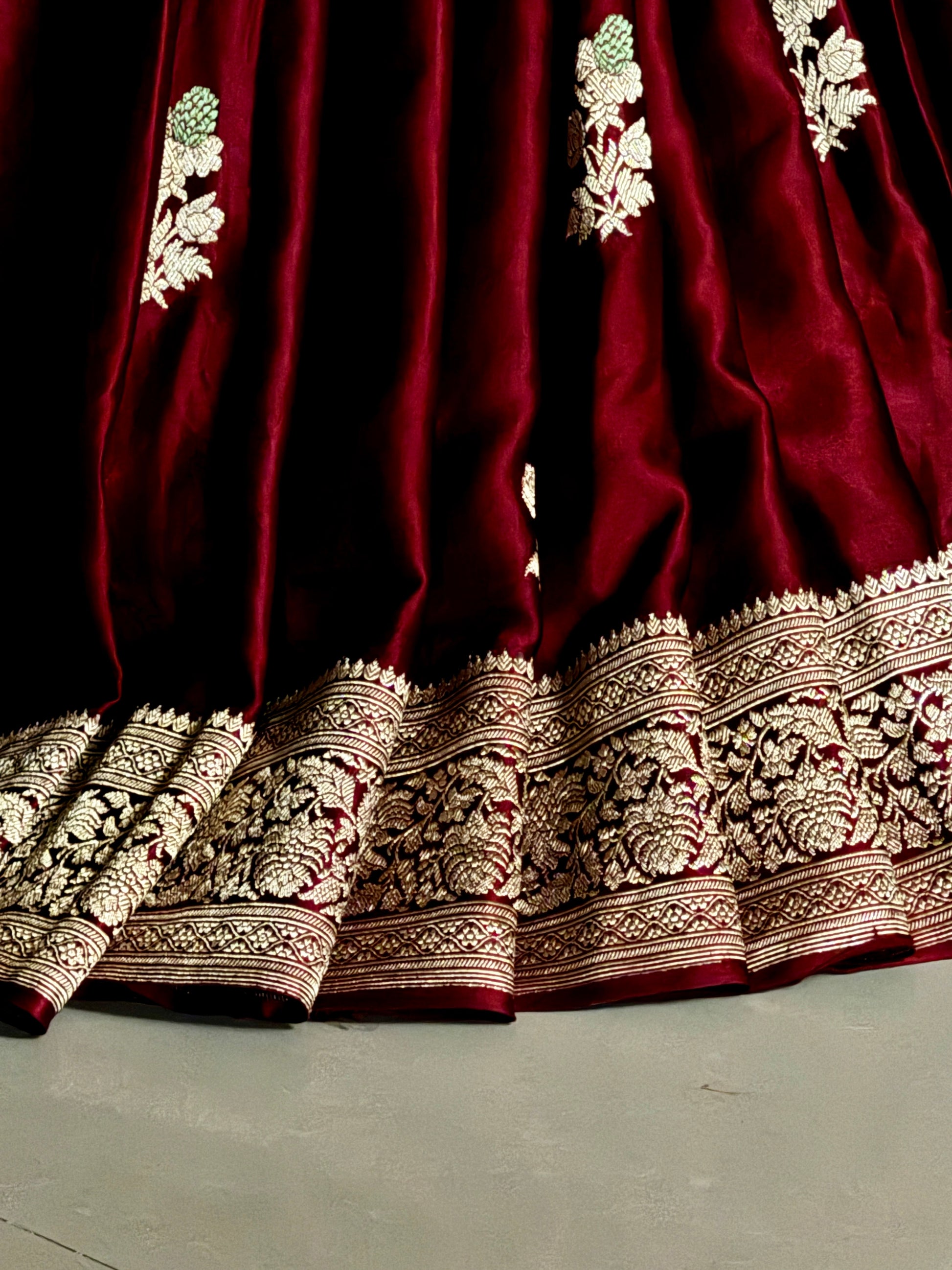 Maroon Pure Mashru Silk Handwoven Banarasi Saree