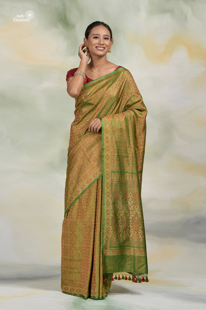 Mehndi Green Tanchui Jamawar Pure Katan Silk Handloom Banarasi Saree with Zari