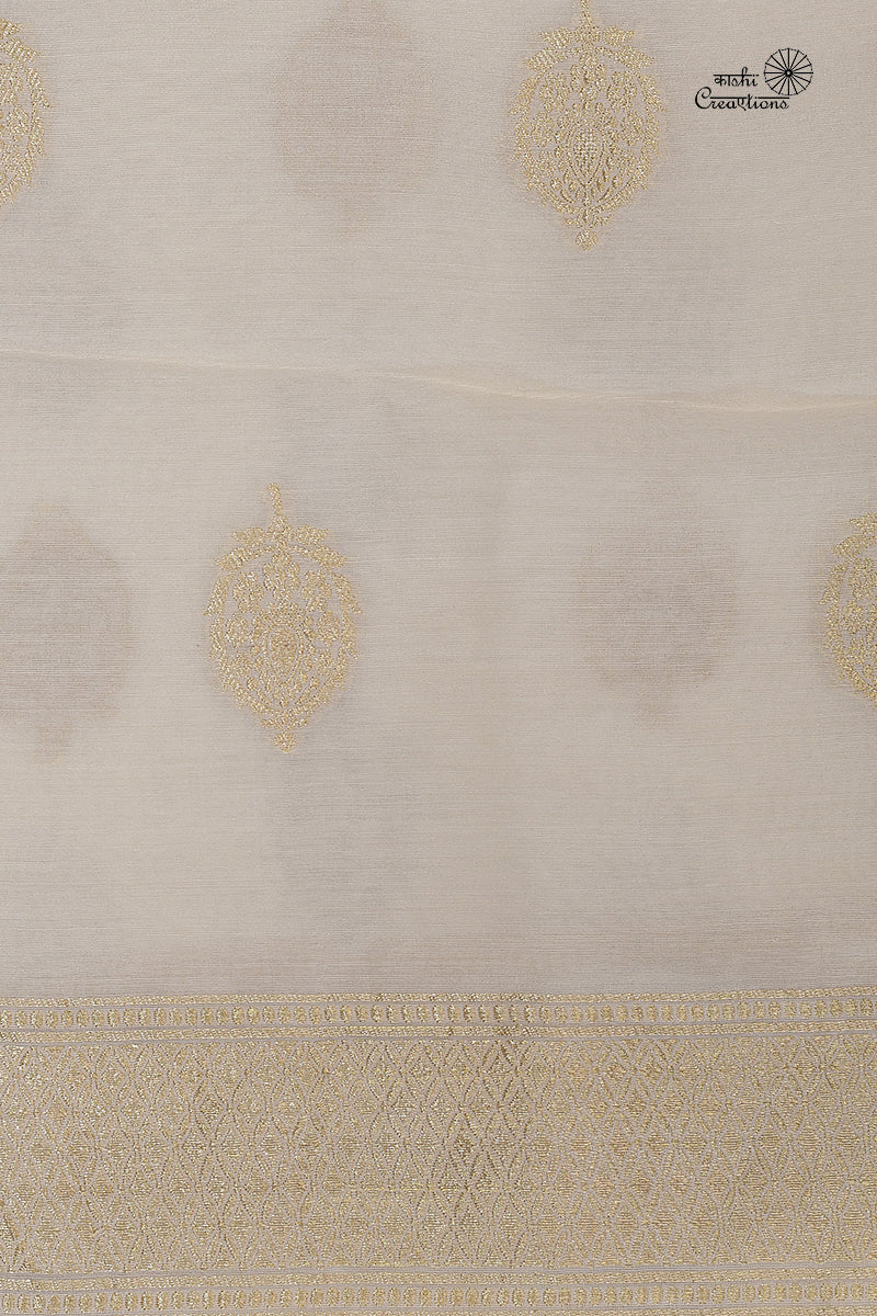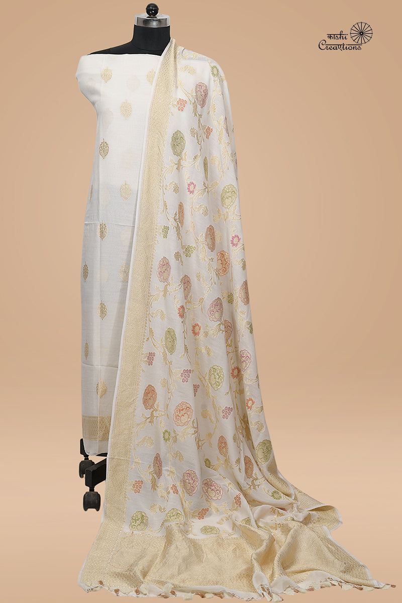 Off White Pure Munga Silk Handloom Bnarasi Suit with Meenakari