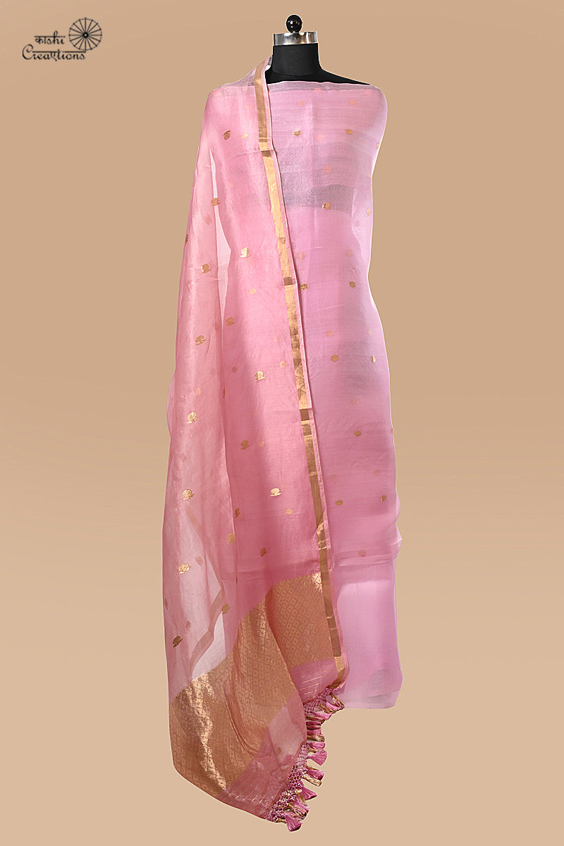 Onion Pink Pure Kora Silk Handwoven Banarasi Suit Set