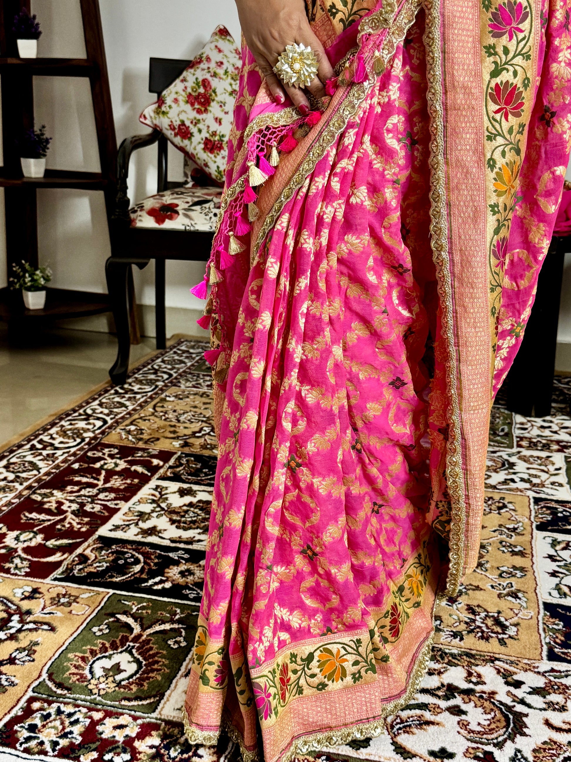 Pink Pure Khaddi Georgette Handloom Banarasi Saree