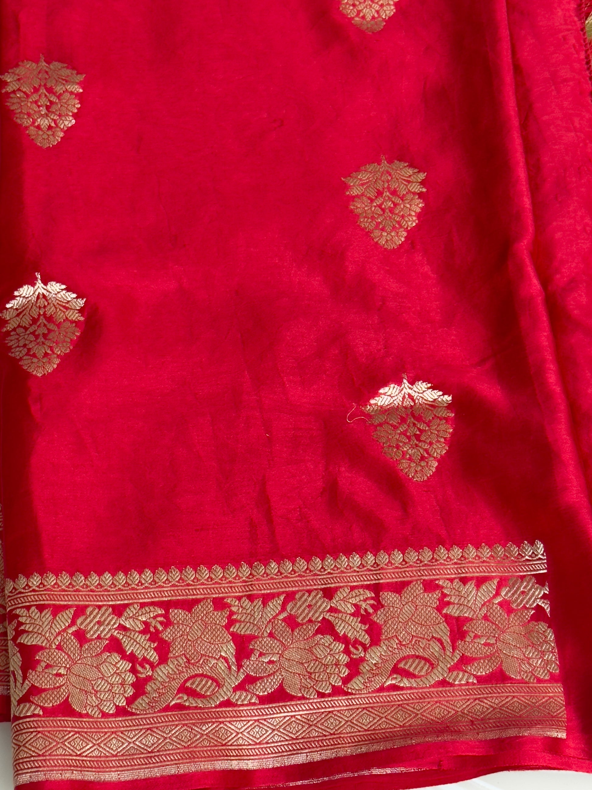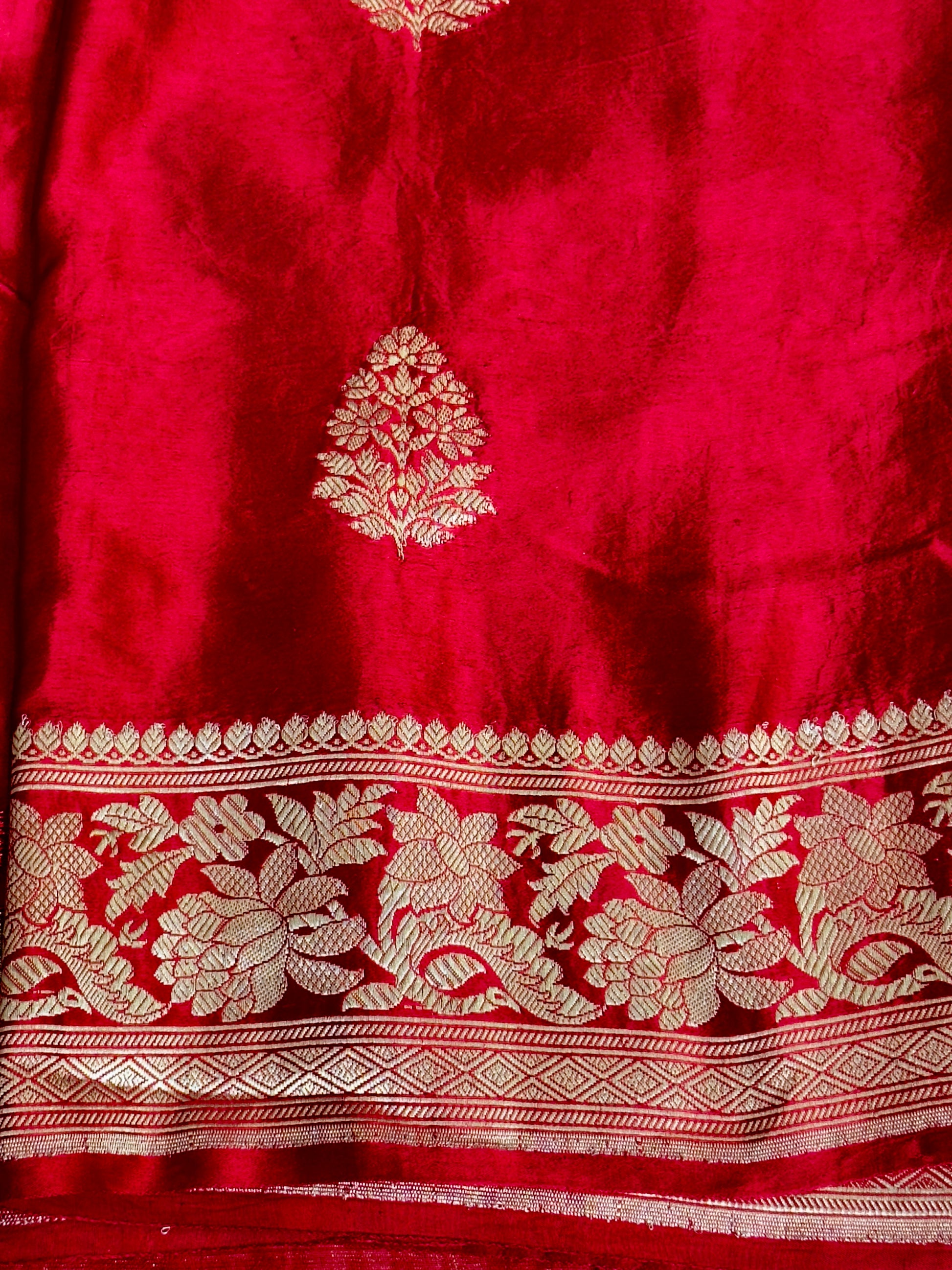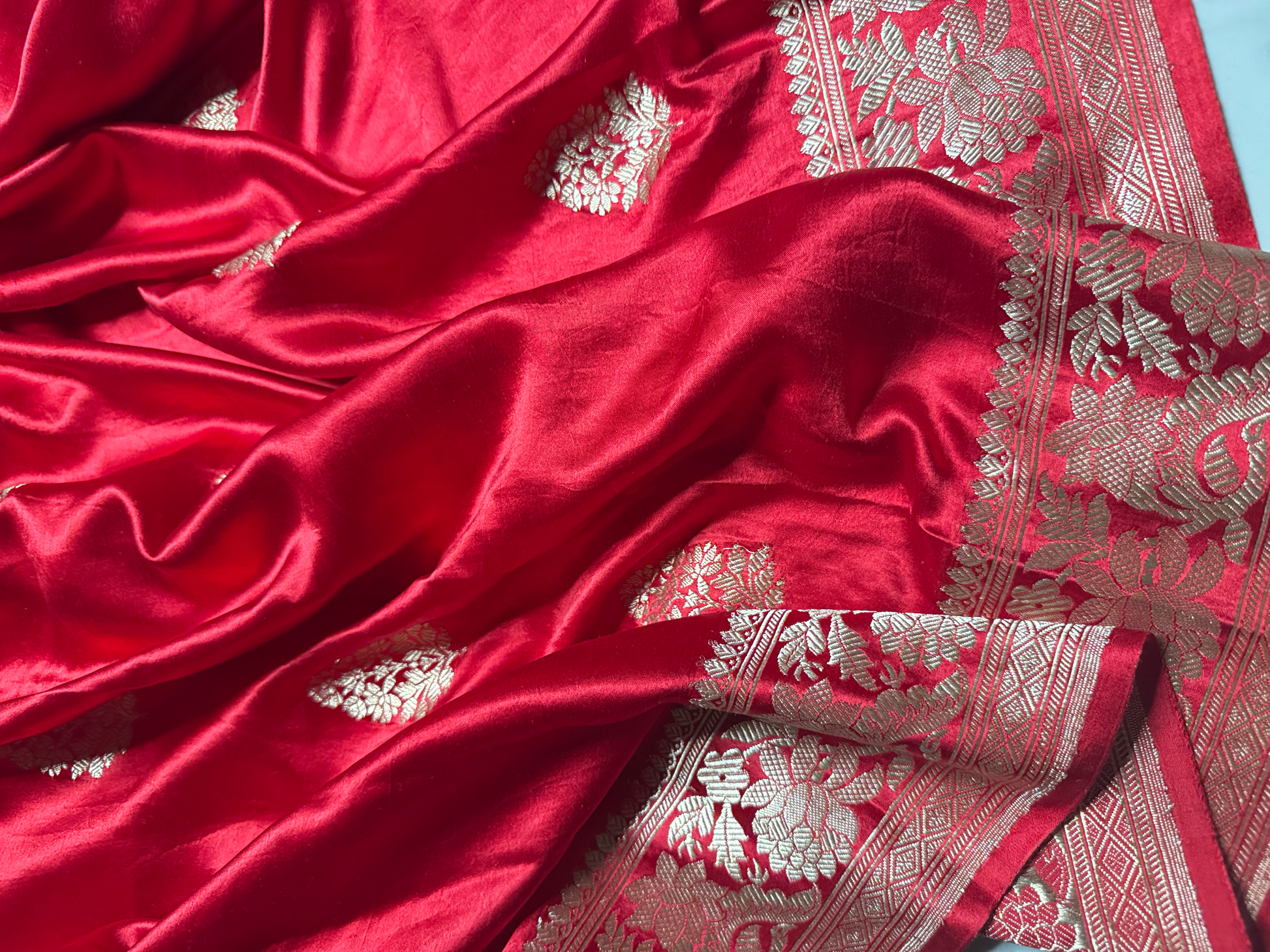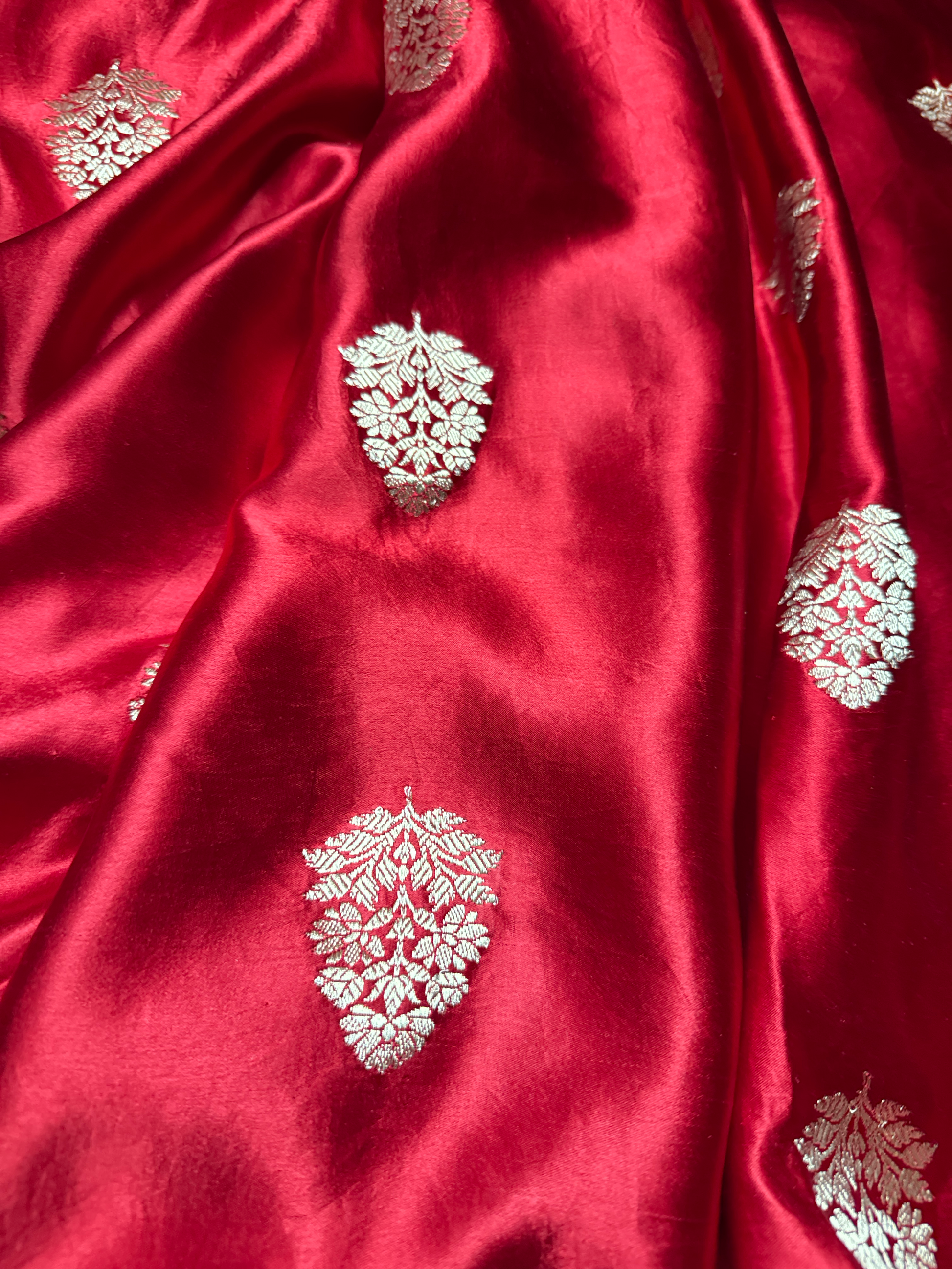 Red Pure Mashru Silk Handwoven Banarasi Saree