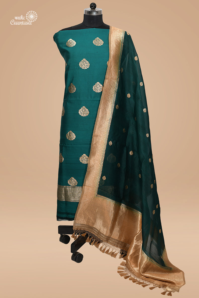 Peacock Blue Pure Chinya Silk Suit with Pure Kora Silk Dupatta