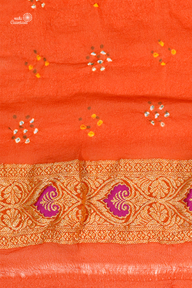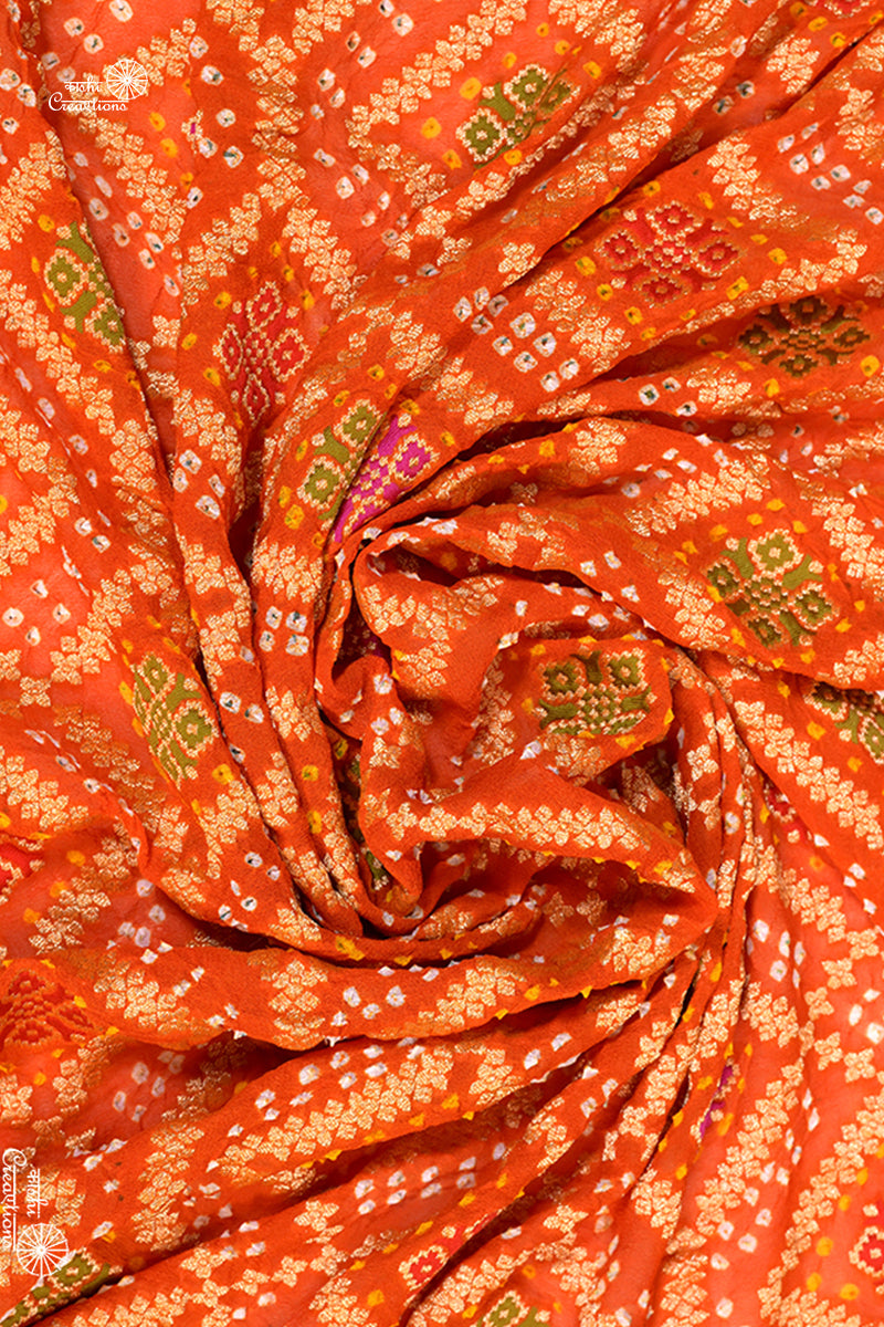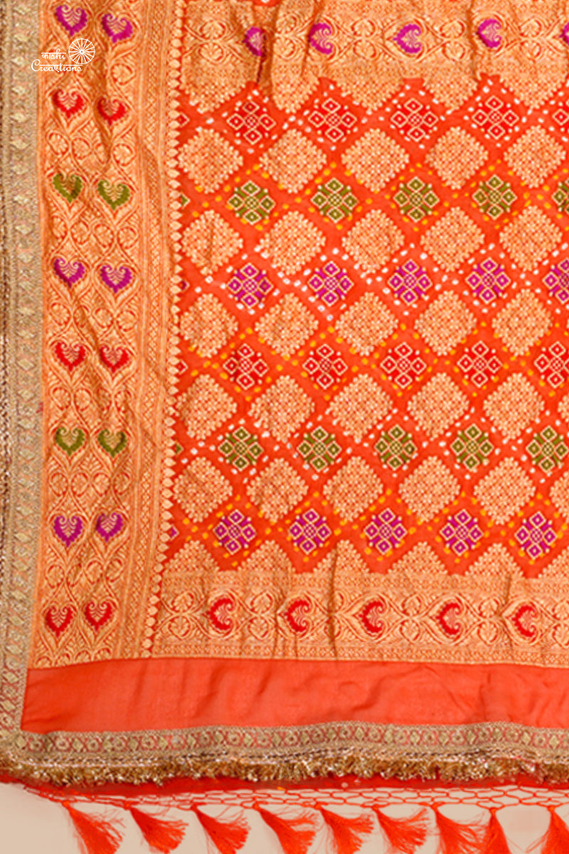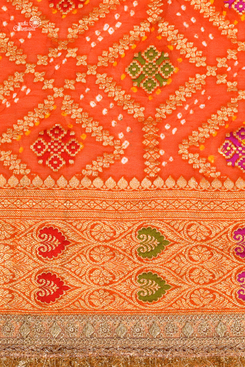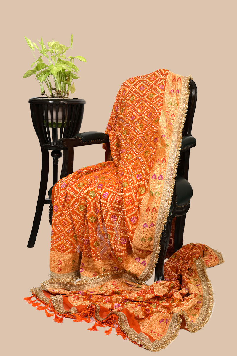 Burnt Orange Pure Khaddi Georgette Banarasi Bandhej Saree with Meenakari